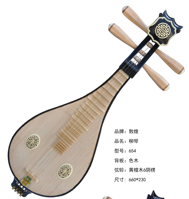 商品名称:正品上海敦煌柳琴654普及柳琴黄檀木/微调弦托/如意头花/敦煌