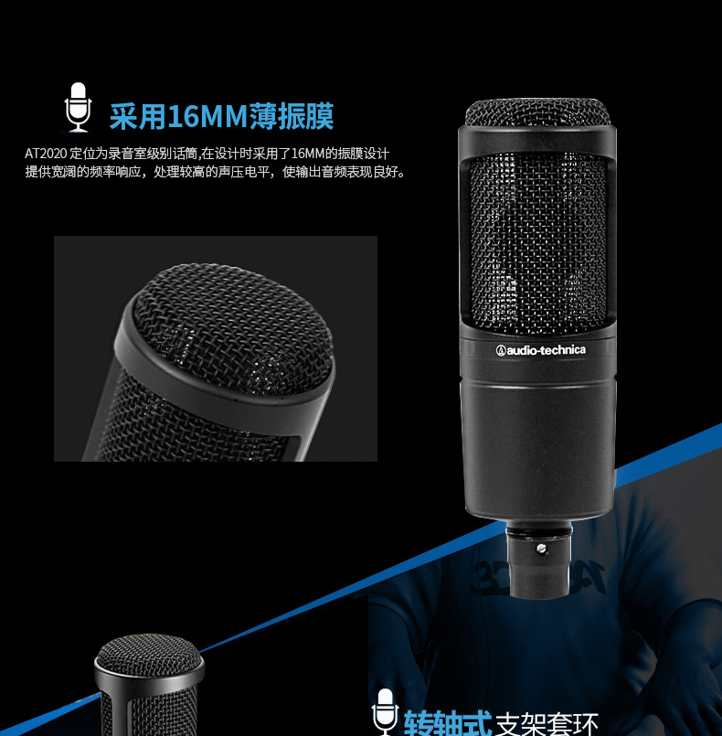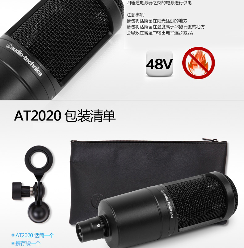 商品名称:Audio Technica/铁三角 AT2020 录音室可用 电容话筒