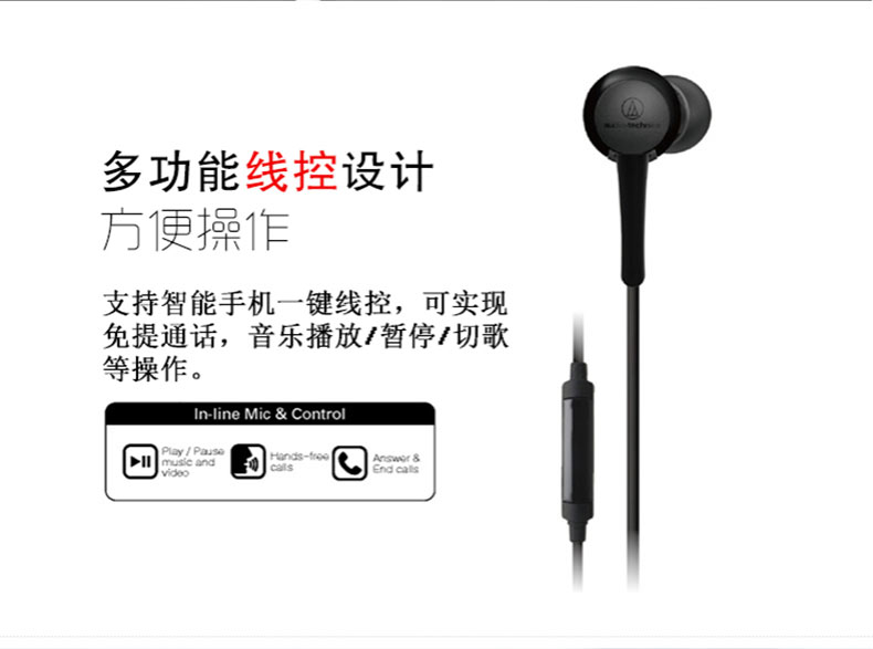 商品名称:Audio Technica/铁三角 ATH-CKR70iS 通话线控带麦入耳式HIFI耳机