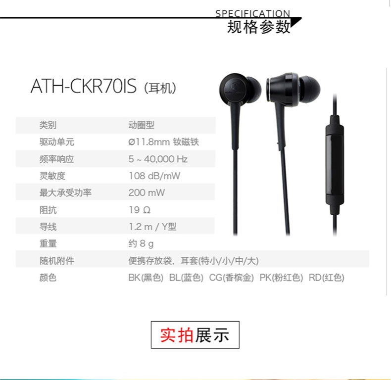 铁三角耳机型号:ATH-CKR70iS