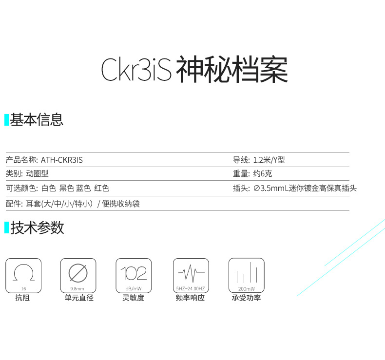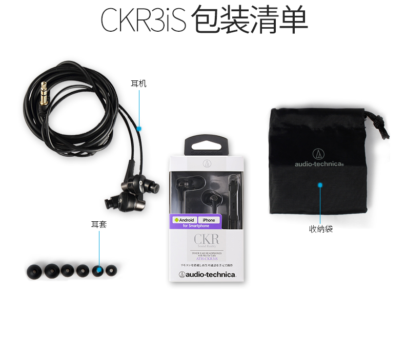 商品名称:Audio Technica/铁三角 ATH-CKR3iS 动圈入耳式线控运动手机耳机