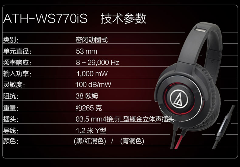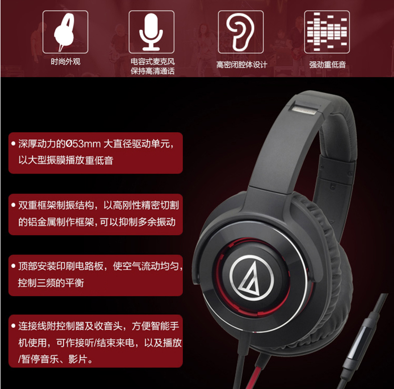 商品名称:Audio Technica/铁三角 ATH-ws770is 重低音头戴耳机