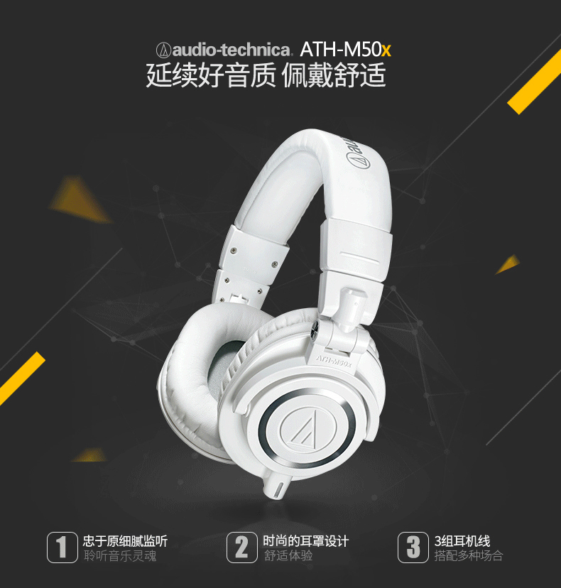 商品名称:Audio Technica/铁三角 ATH-M50x专业头戴式监听耳机
