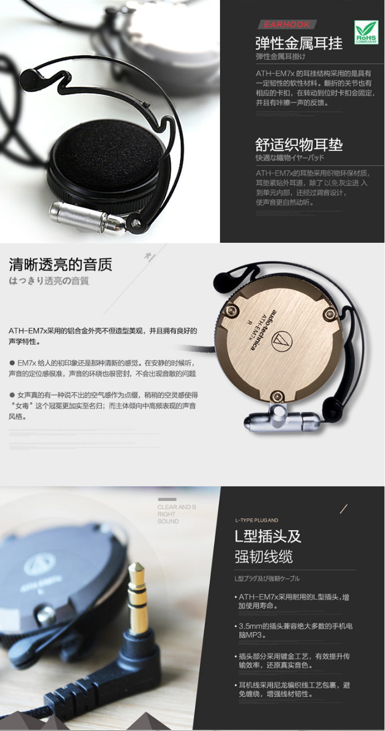 商品名称:Audio Technica/铁三角 ATH-EM7X 复刻版耳挂式运动耳机
