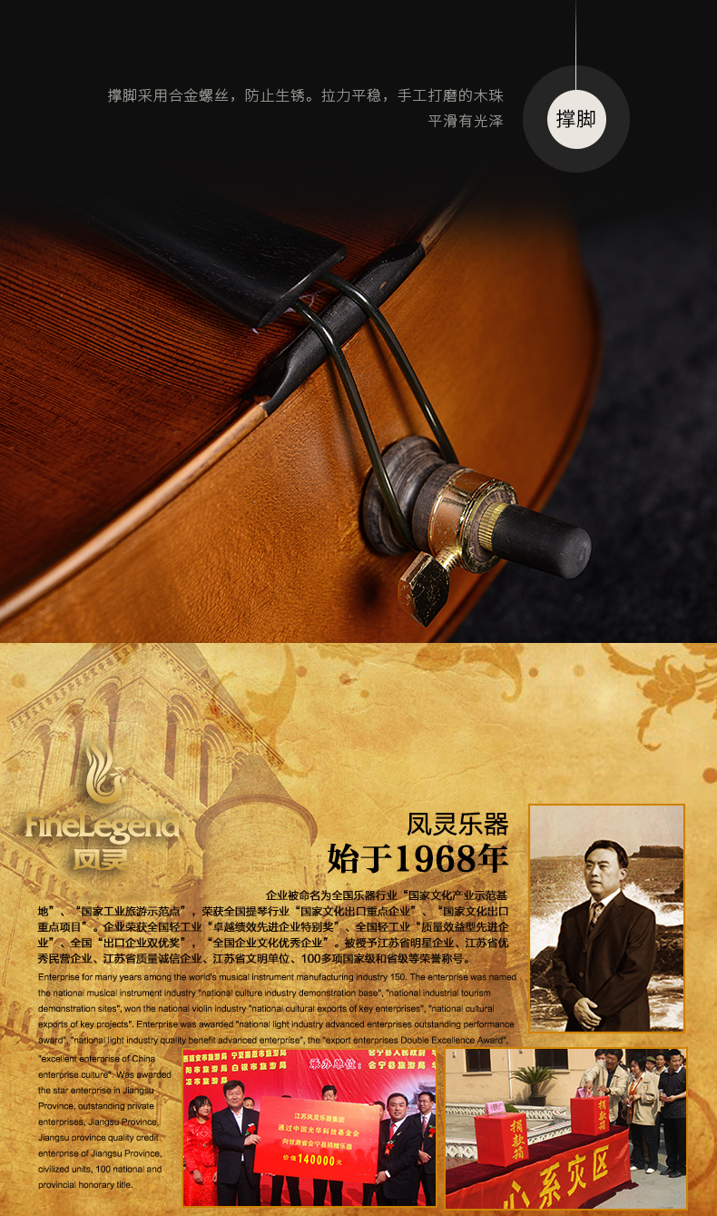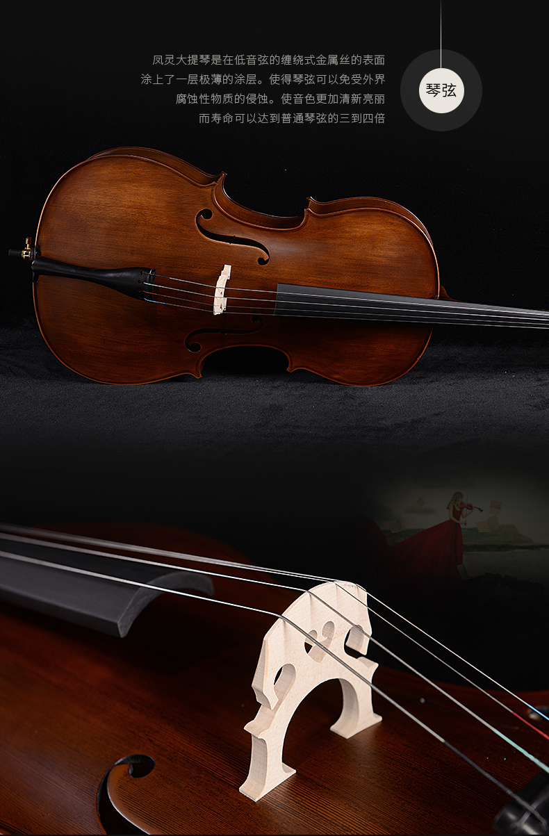 商品名称:凤灵手工大提琴 乌木实板 儿童成人乐器考级演奏大提琴FLC2112