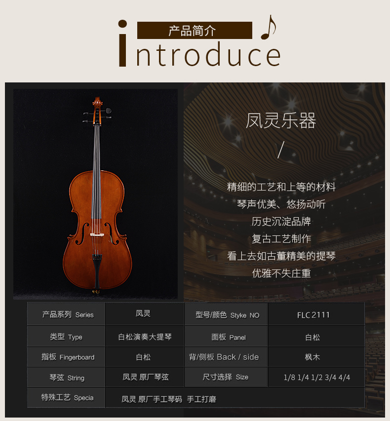 商品名称:凤灵正品 大提琴 手工 实板大提琴 专业考级演奏乐器 FLC2111