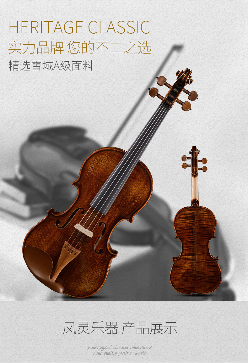 商品名称:凤灵小提琴 儿童成人手工腰果漆花纹实木小提琴考级小提琴FLV3111