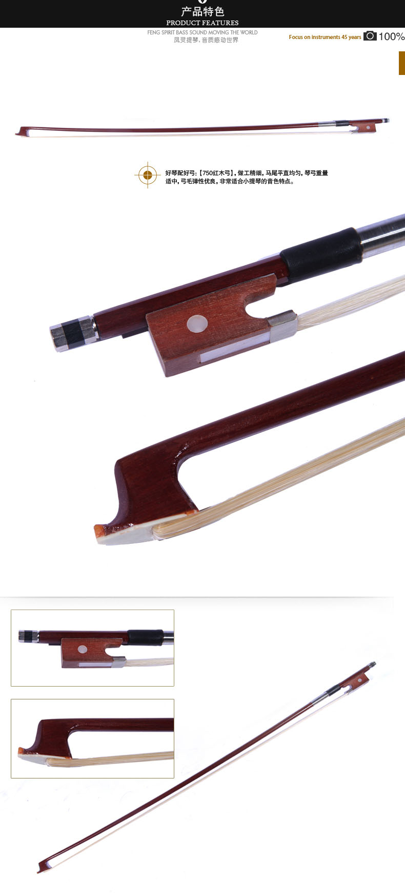 商品名称:小提琴琴弓 普及小提琴弓子 红木弓杆 圆弓 马尾弓