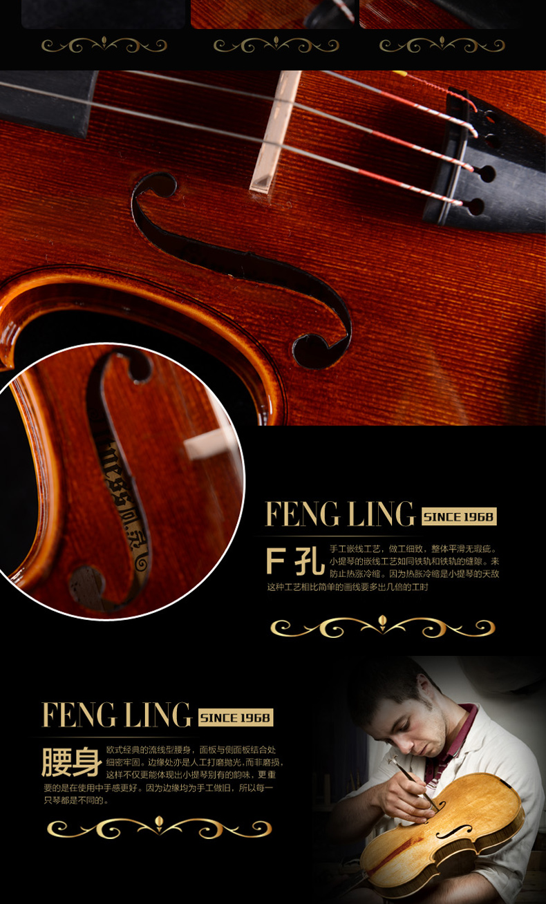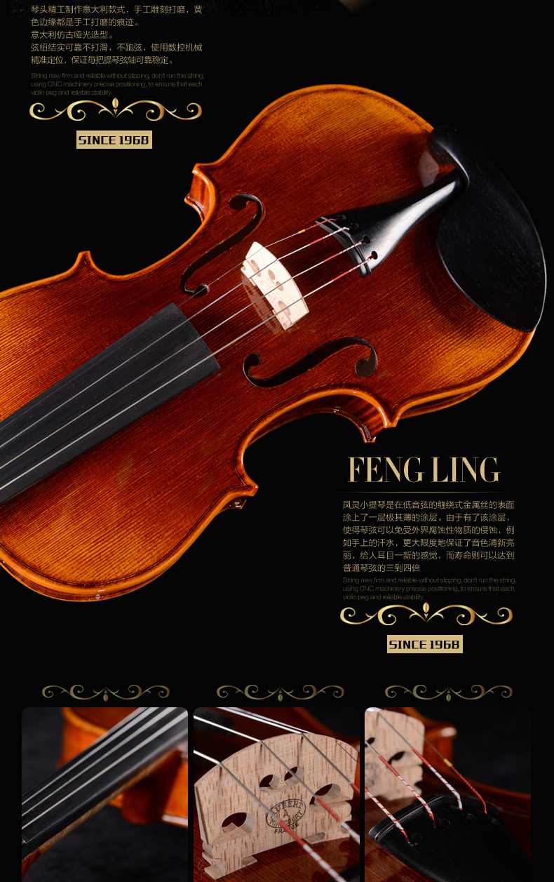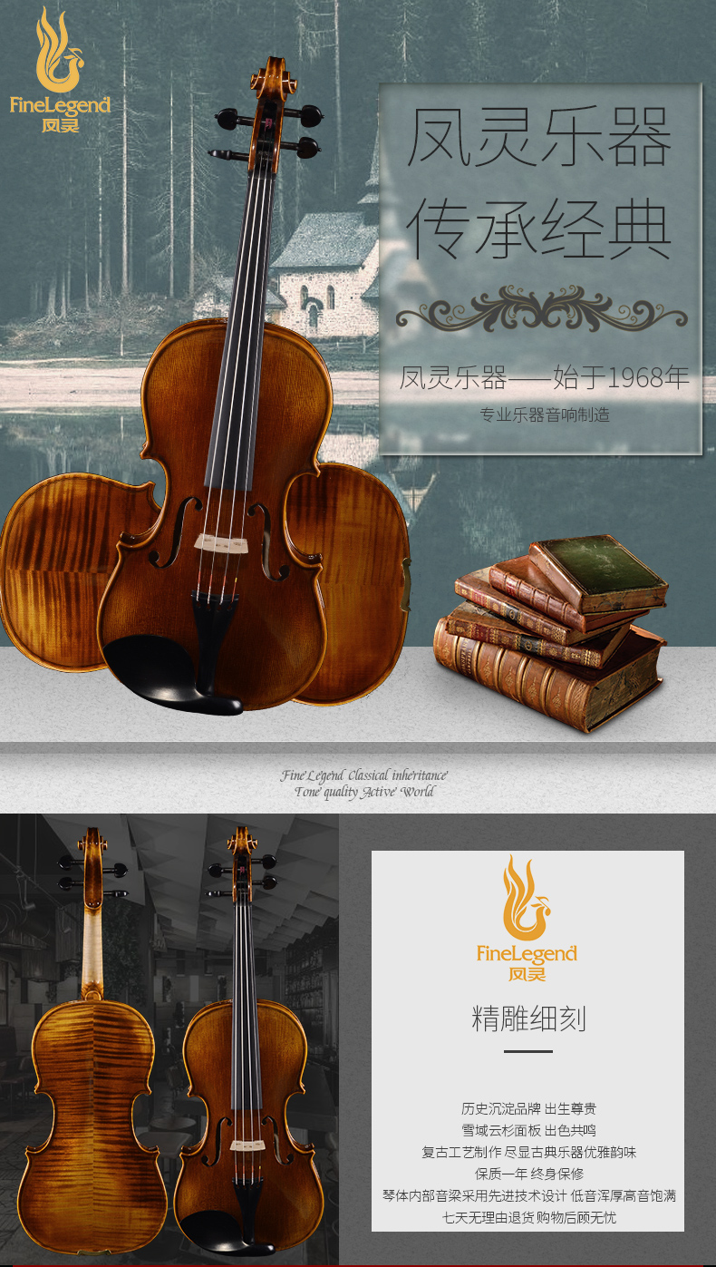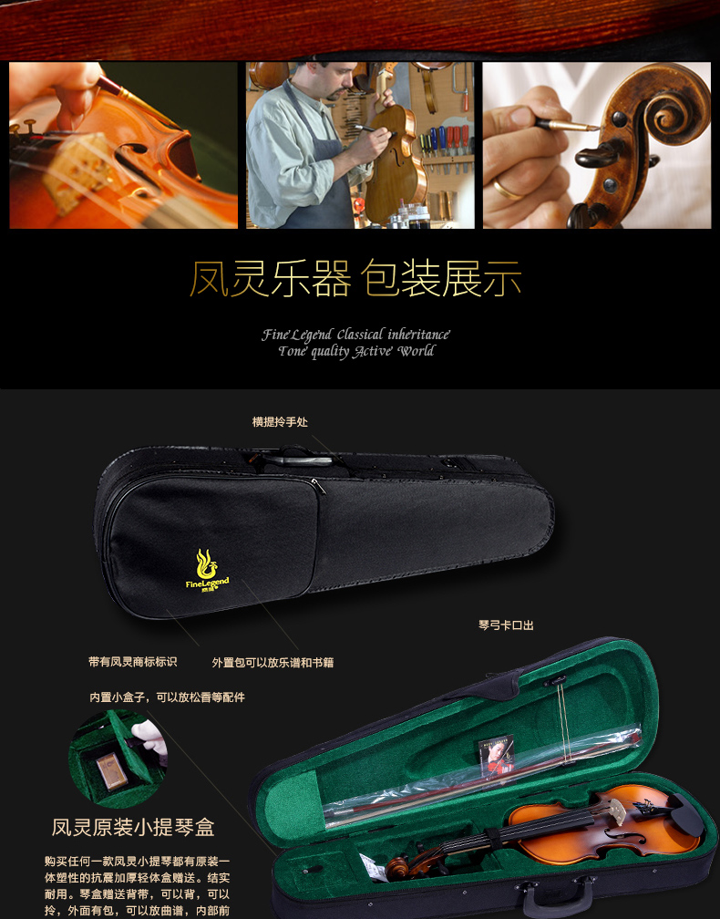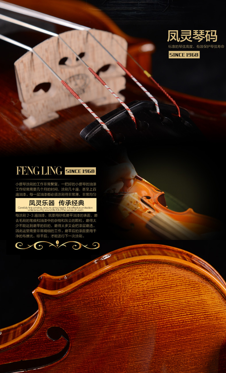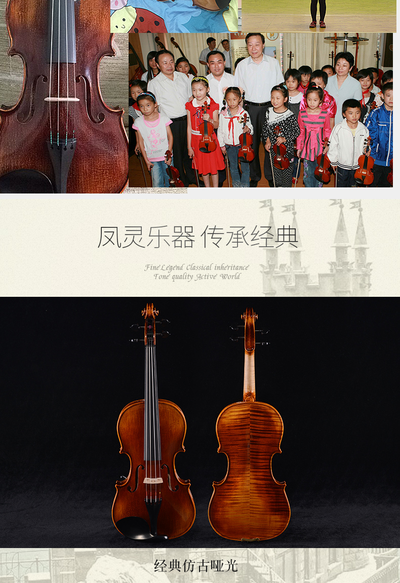 商品名称:凤灵演奏款小提琴 手工柯杷胶花纹小提琴 儿童成人小提琴FLV4113