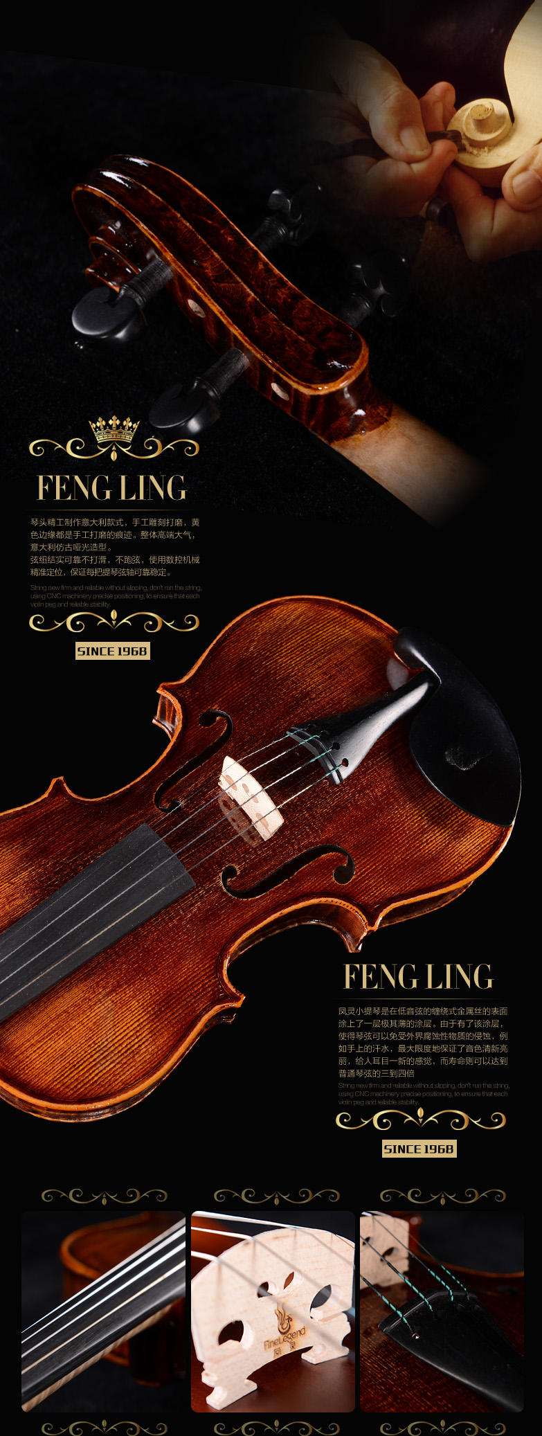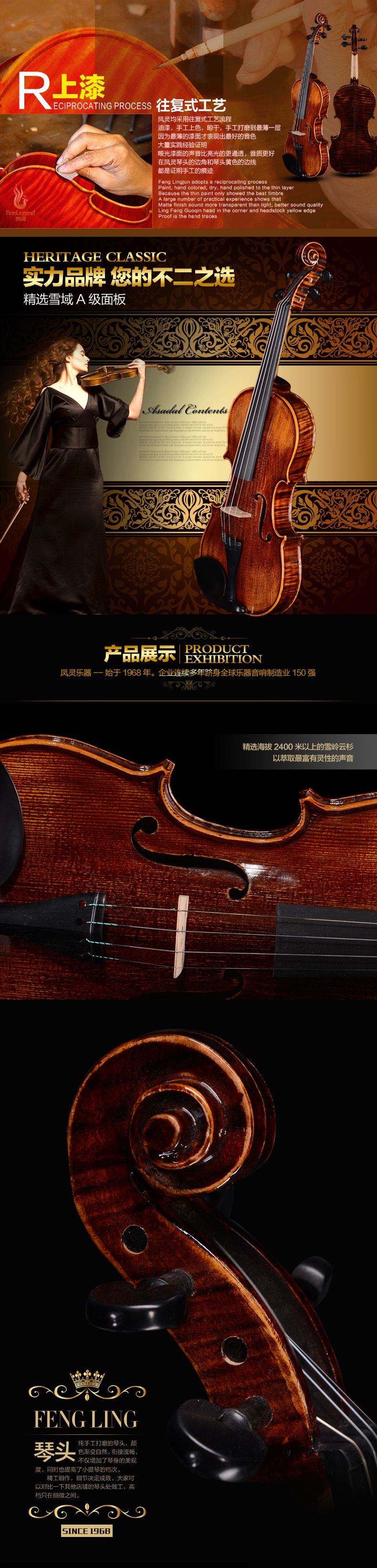 商品名称:凤灵正品成人手工花纹实木小提琴FLV3114自然风干5年以上