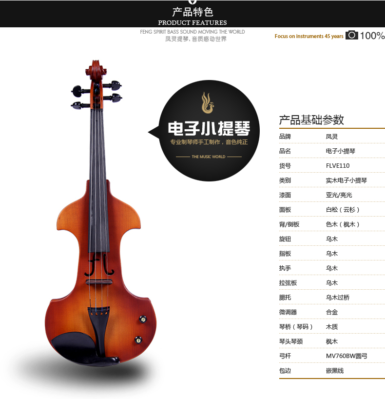 商品名称:凤灵正品乌木配件手工电子小提琴 实木电声乐器