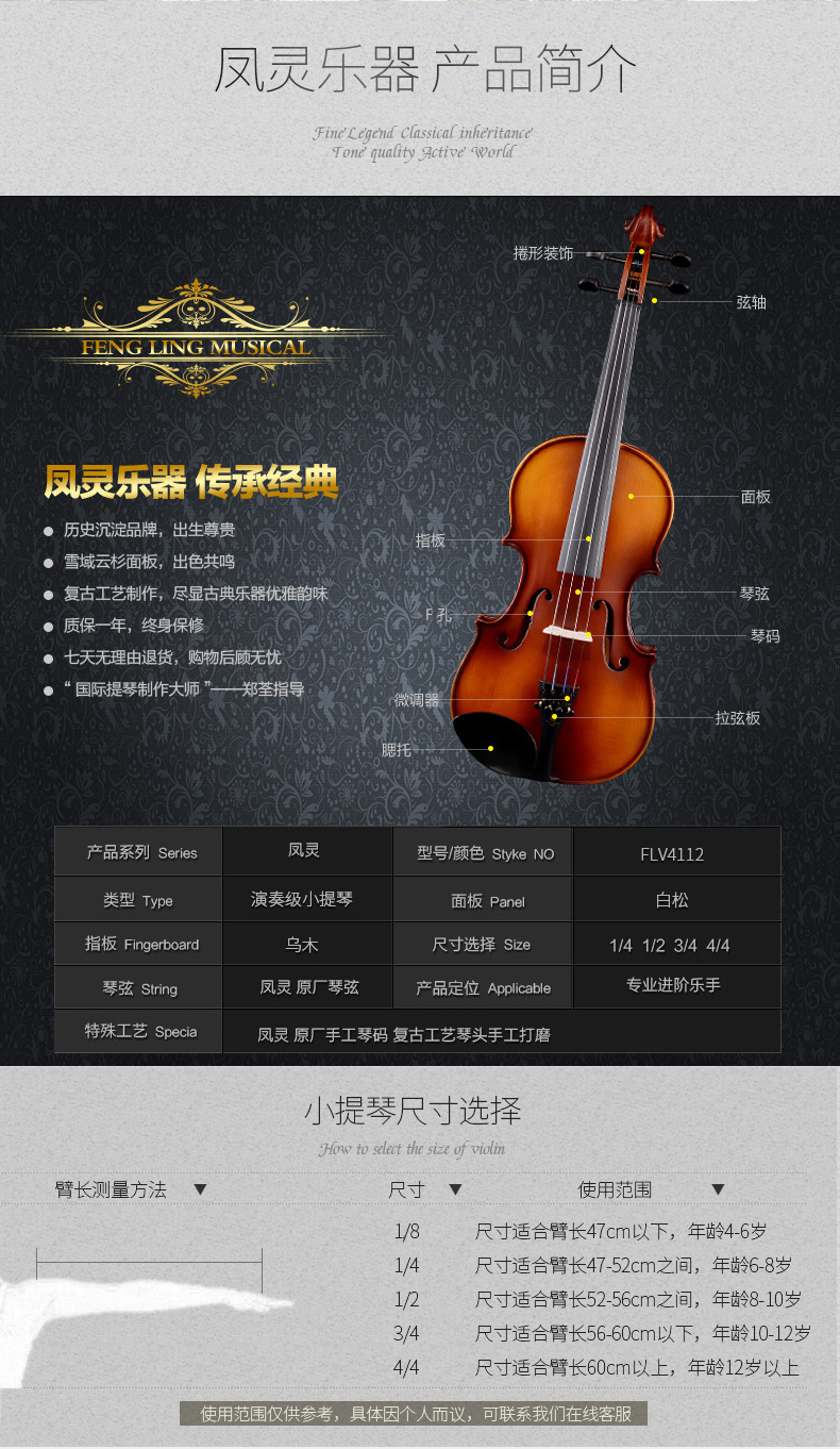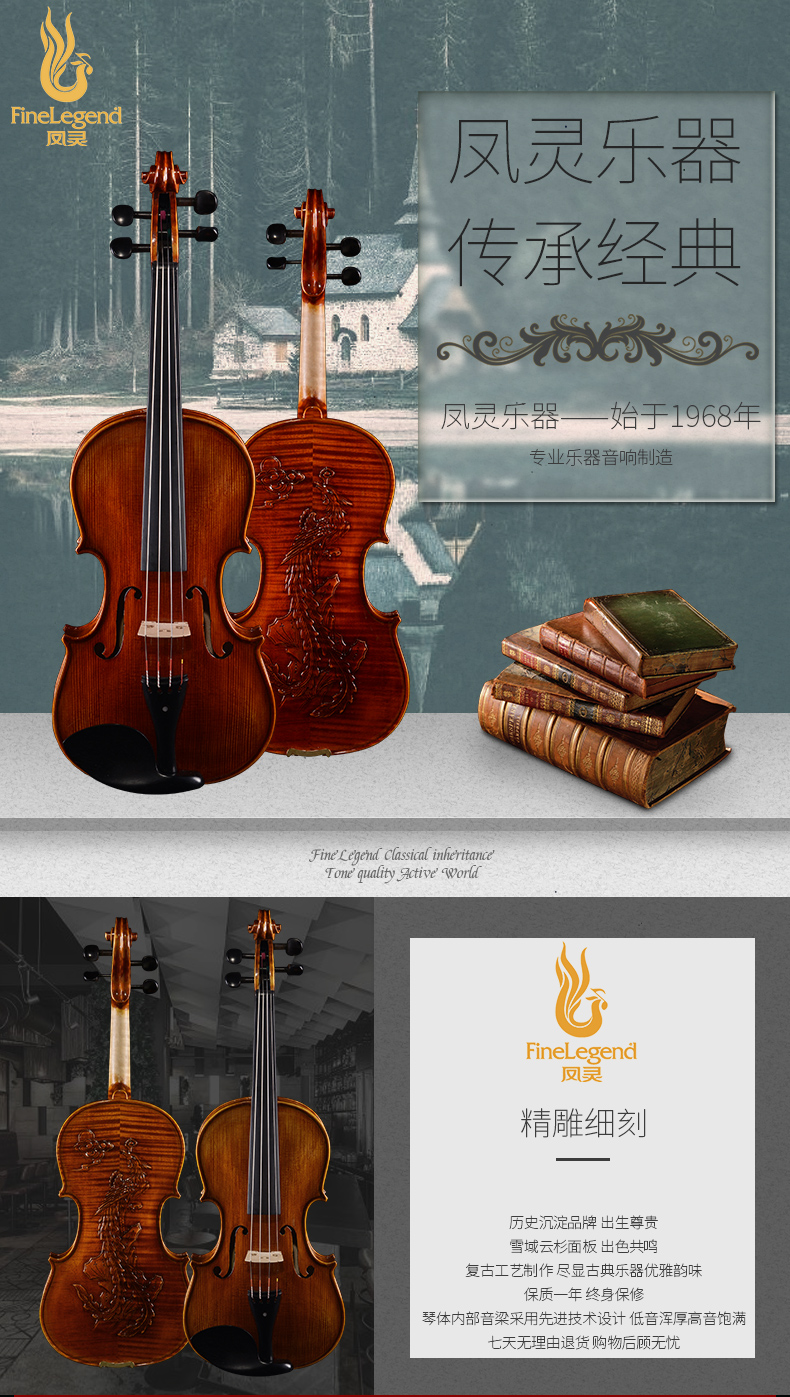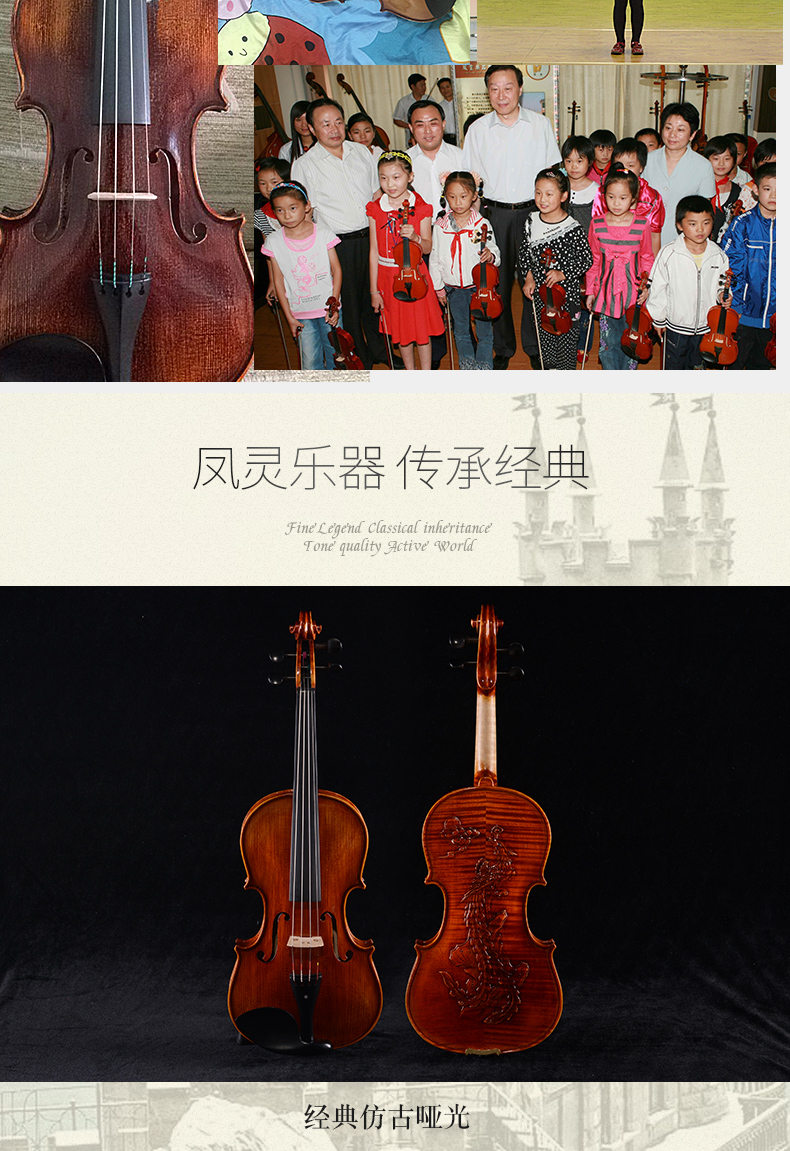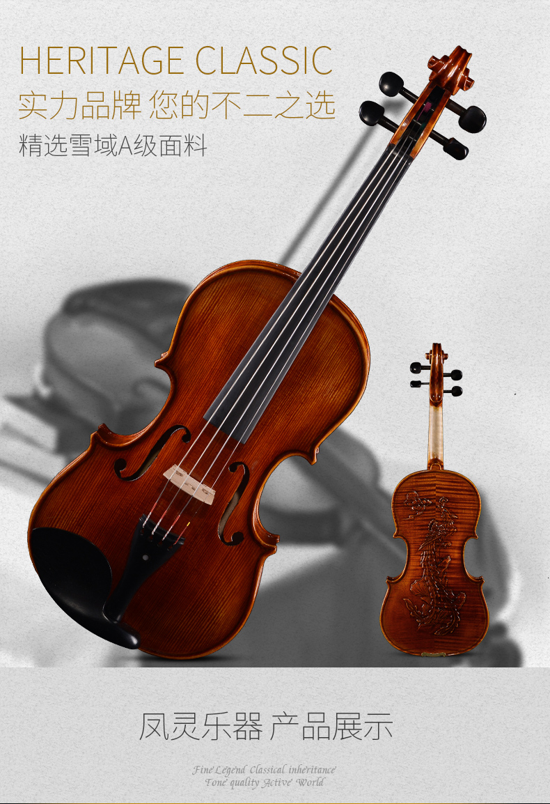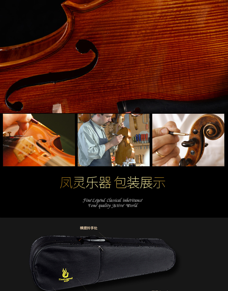 商品名称:凤灵演奏级小提琴 手工柯杷胶花纹小提琴 儿童成人乐器FLV4112
