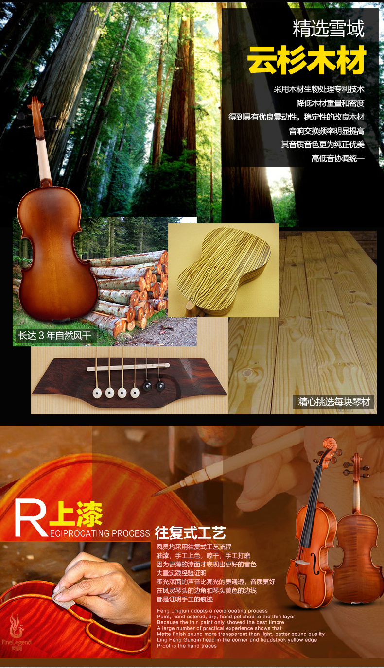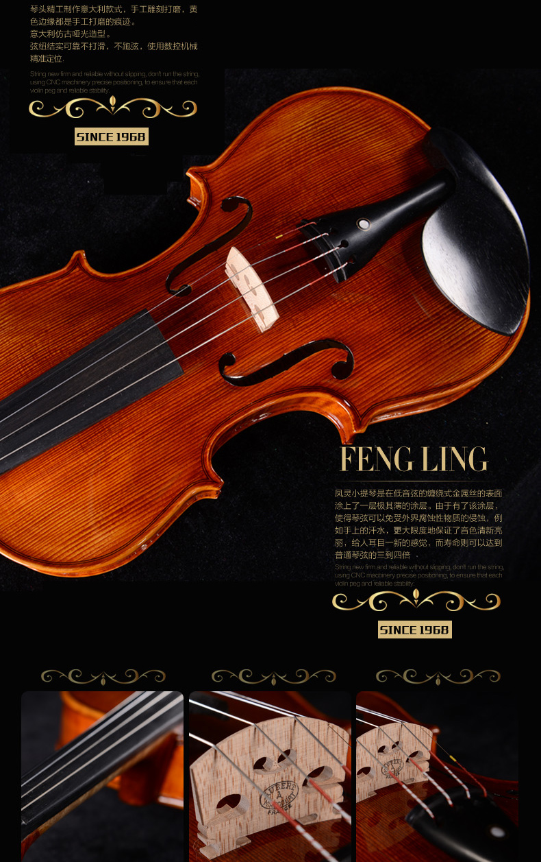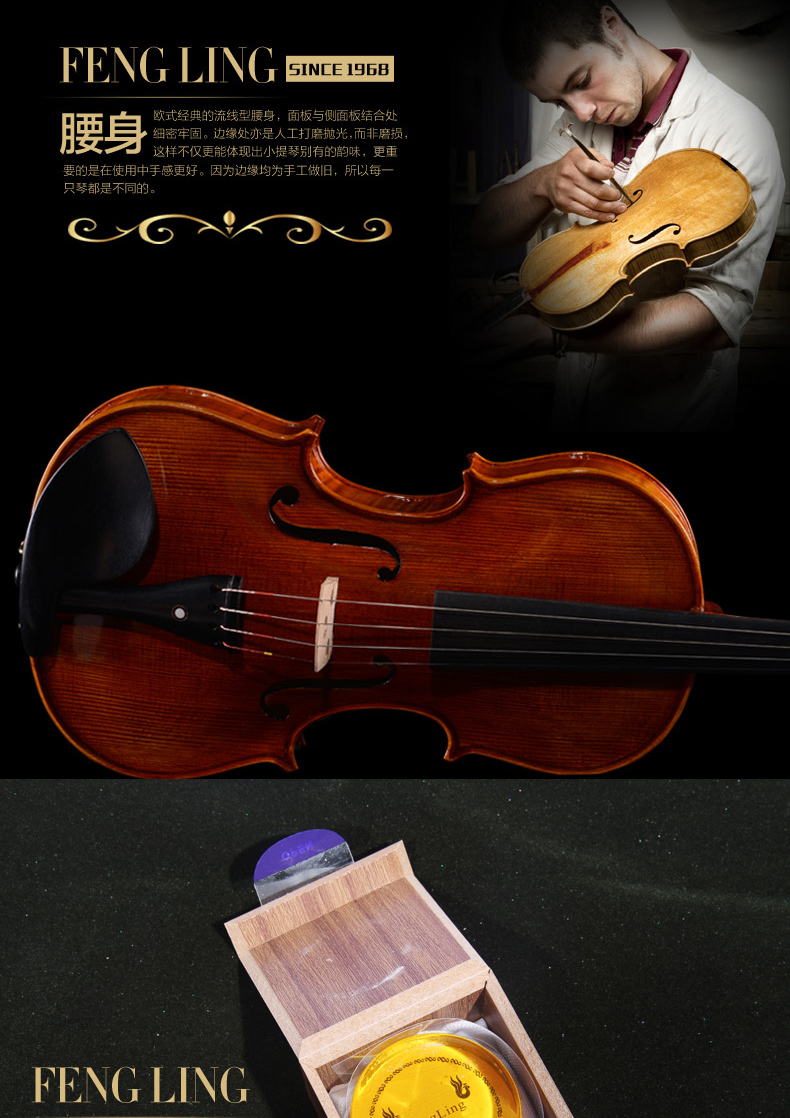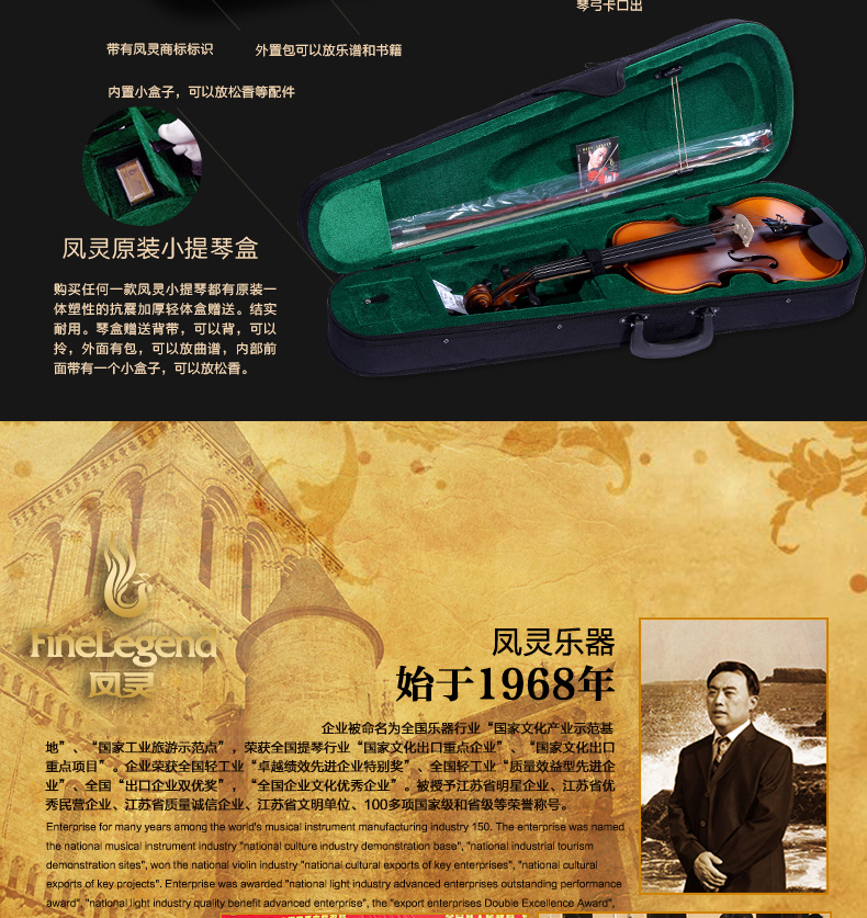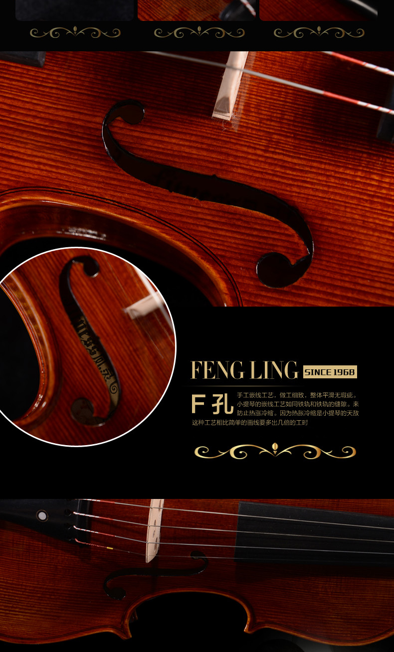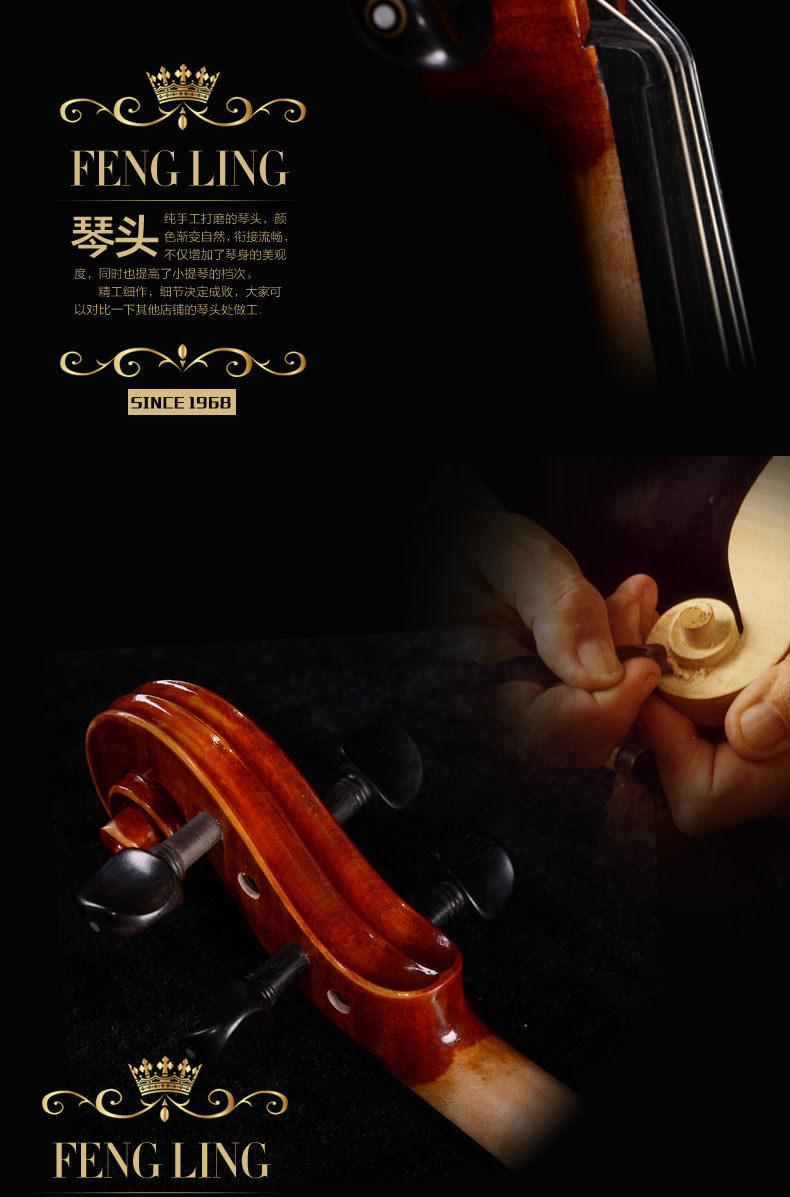 商品名称:凤灵演奏级小提琴 手工柯杷胶花纹小提琴 儿童成人乐器FLV4112