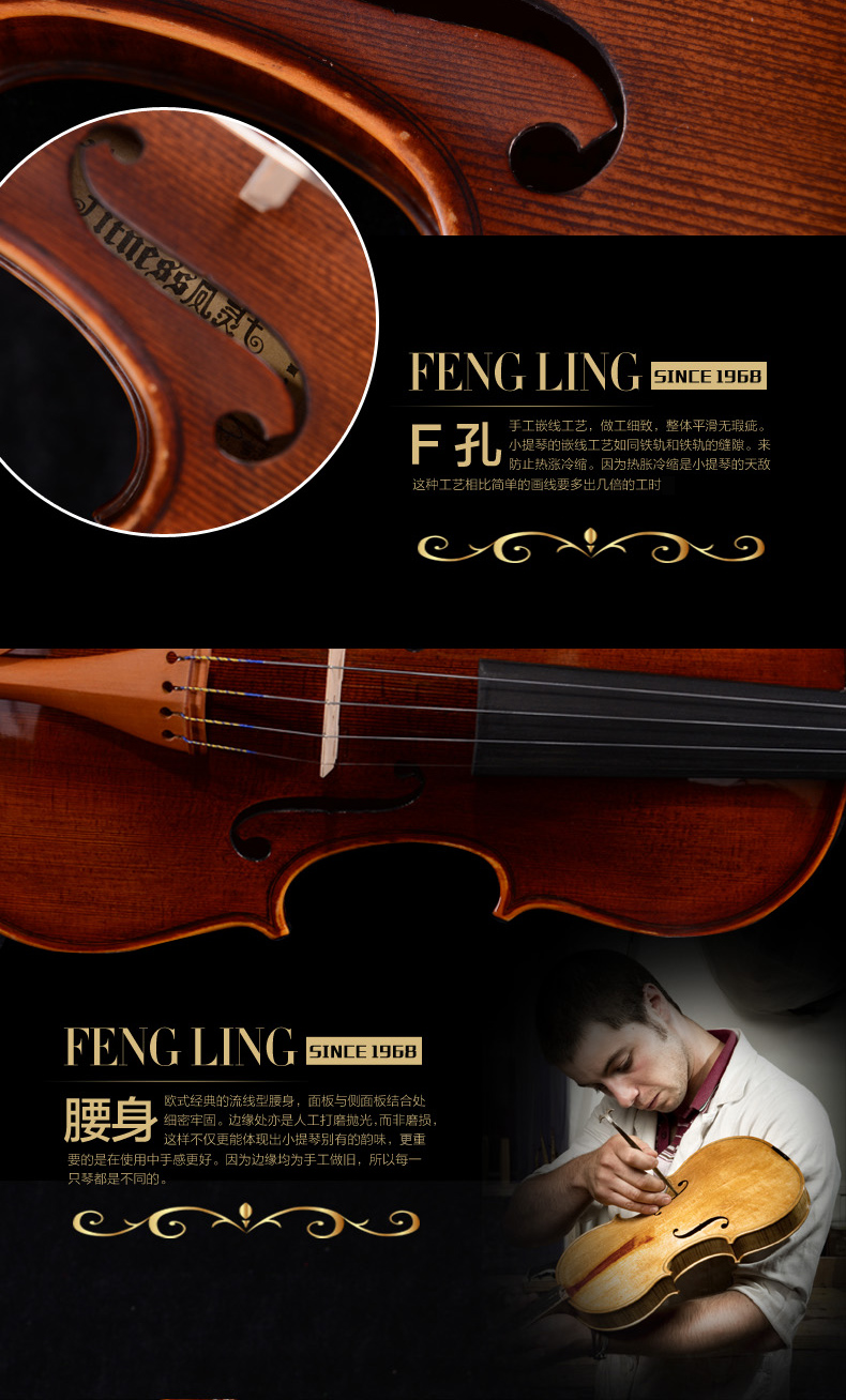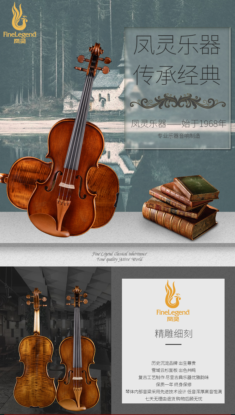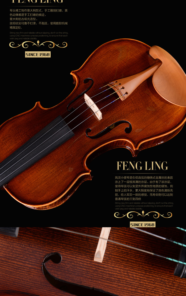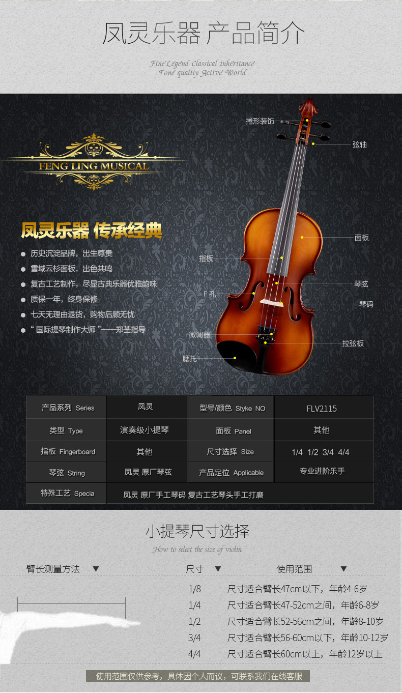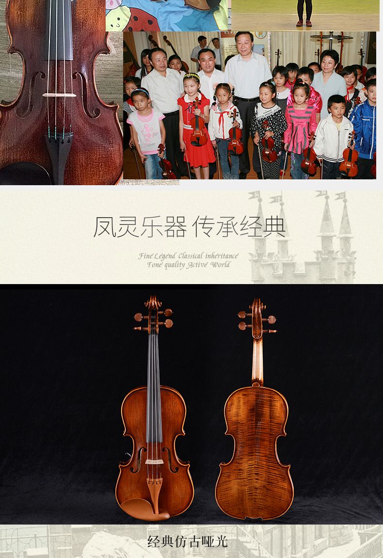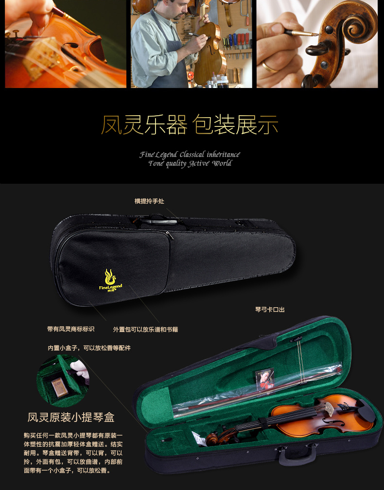 商品名称:凤灵小提琴儿童初学者小提琴手工实木练习考级小提琴 FLV2115