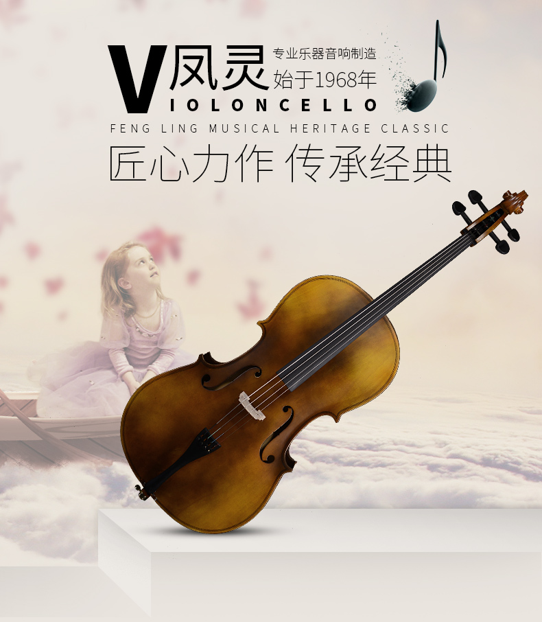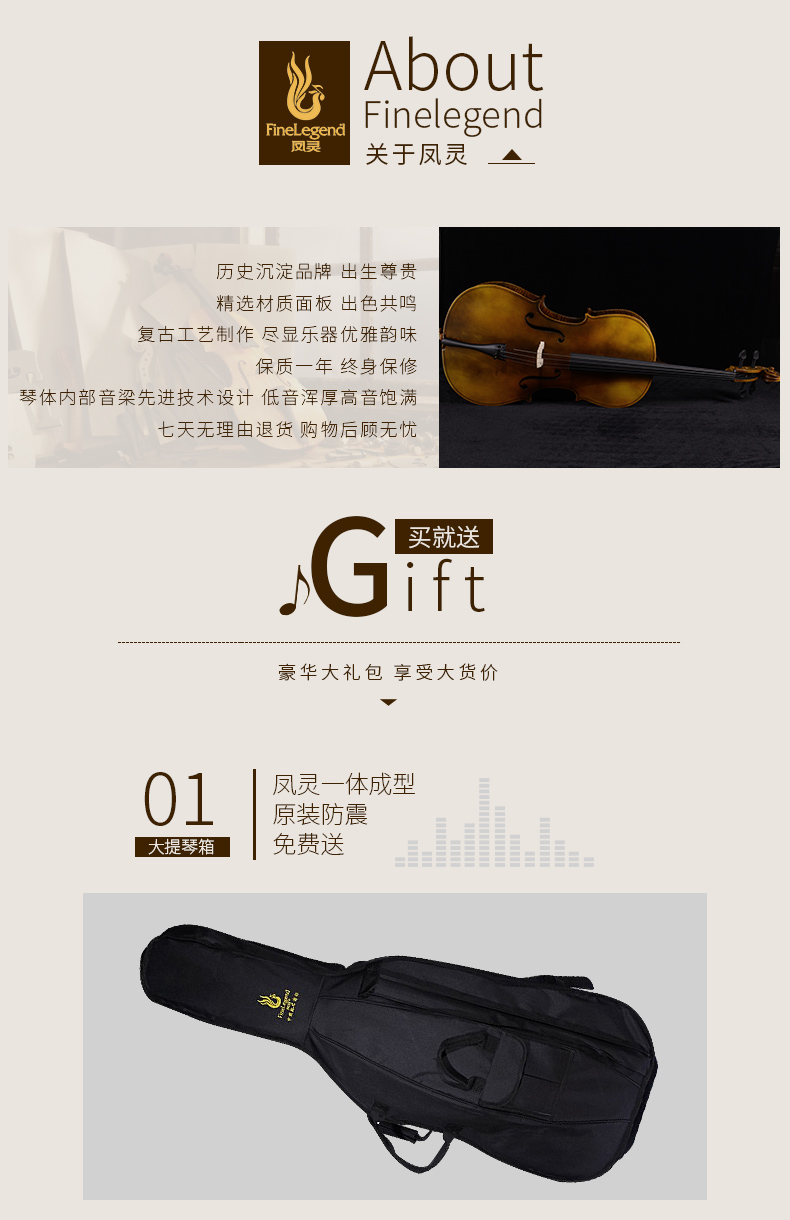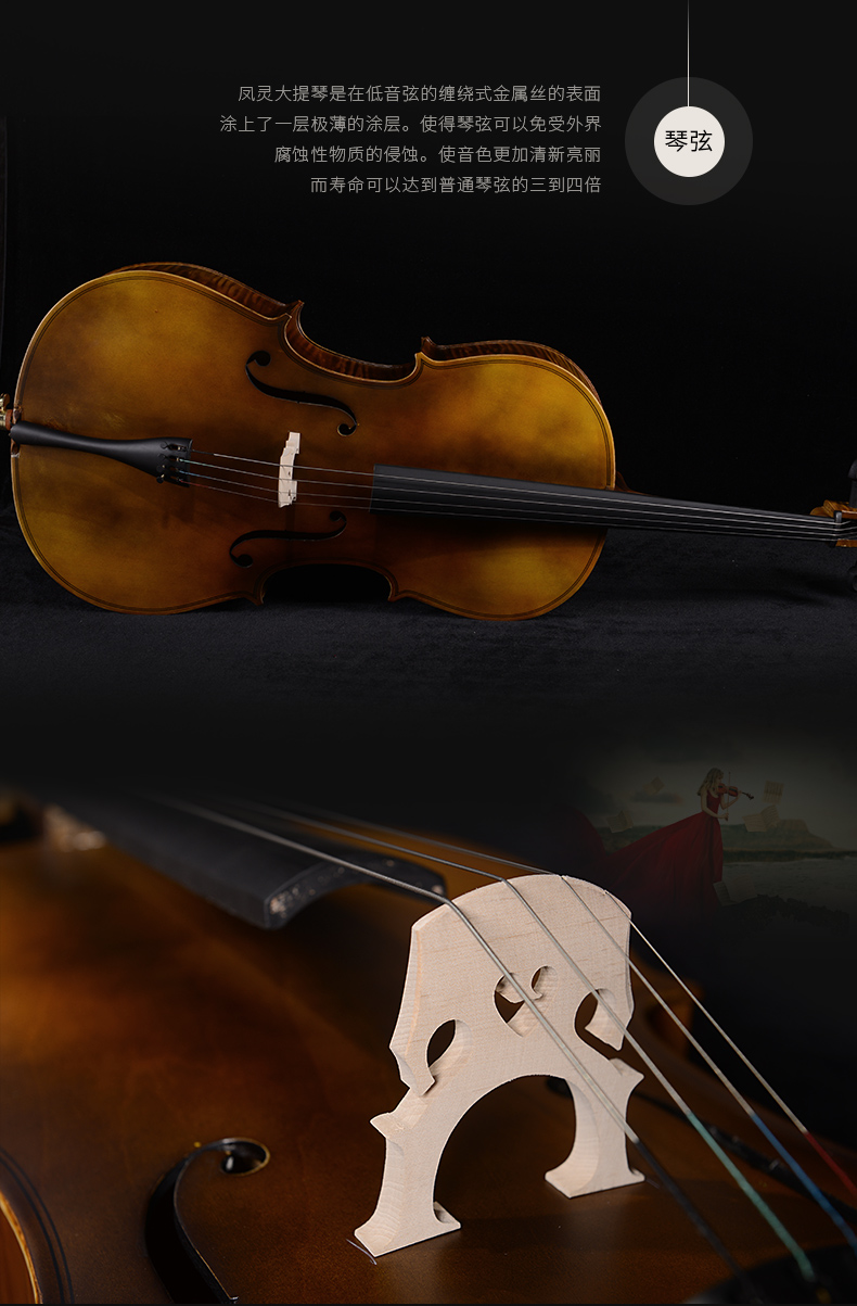 商品名称:凤灵大提琴儿童成人初学者压板 虎纹大提琴FLC1112-F普及考级乐器