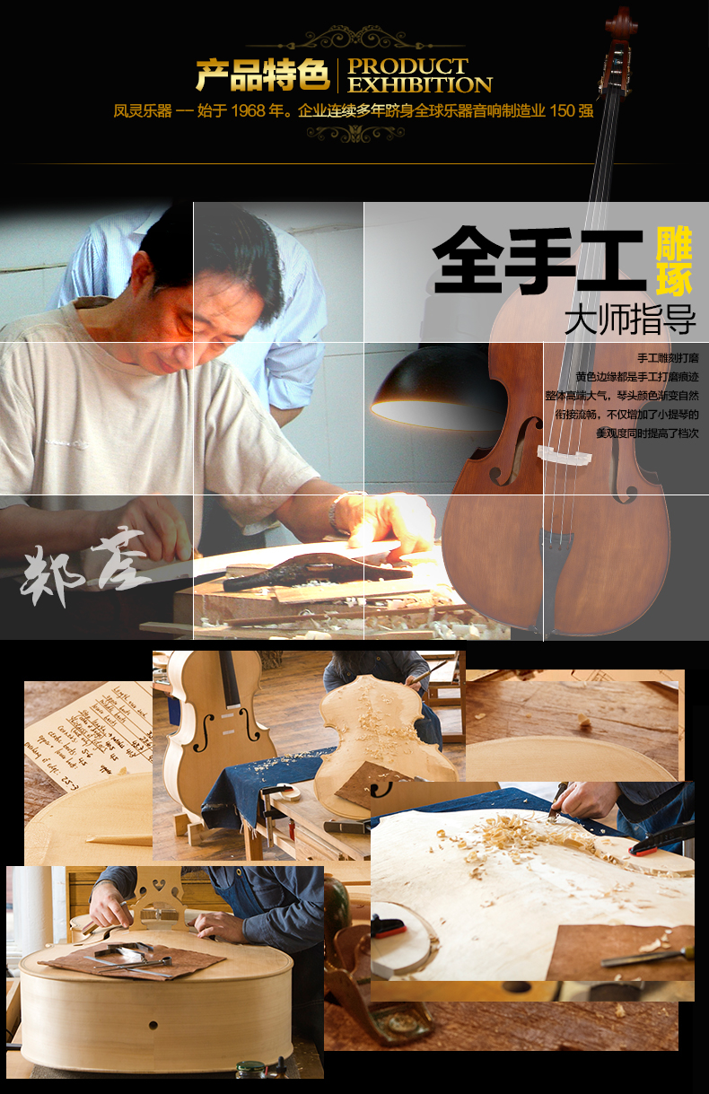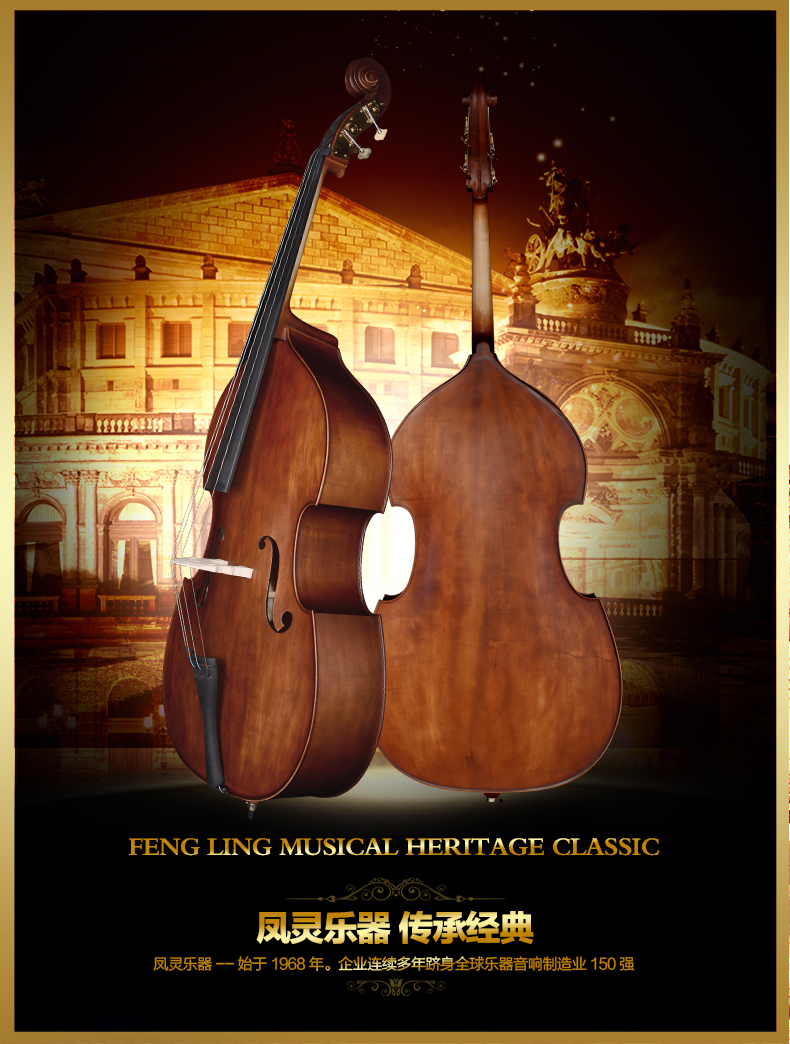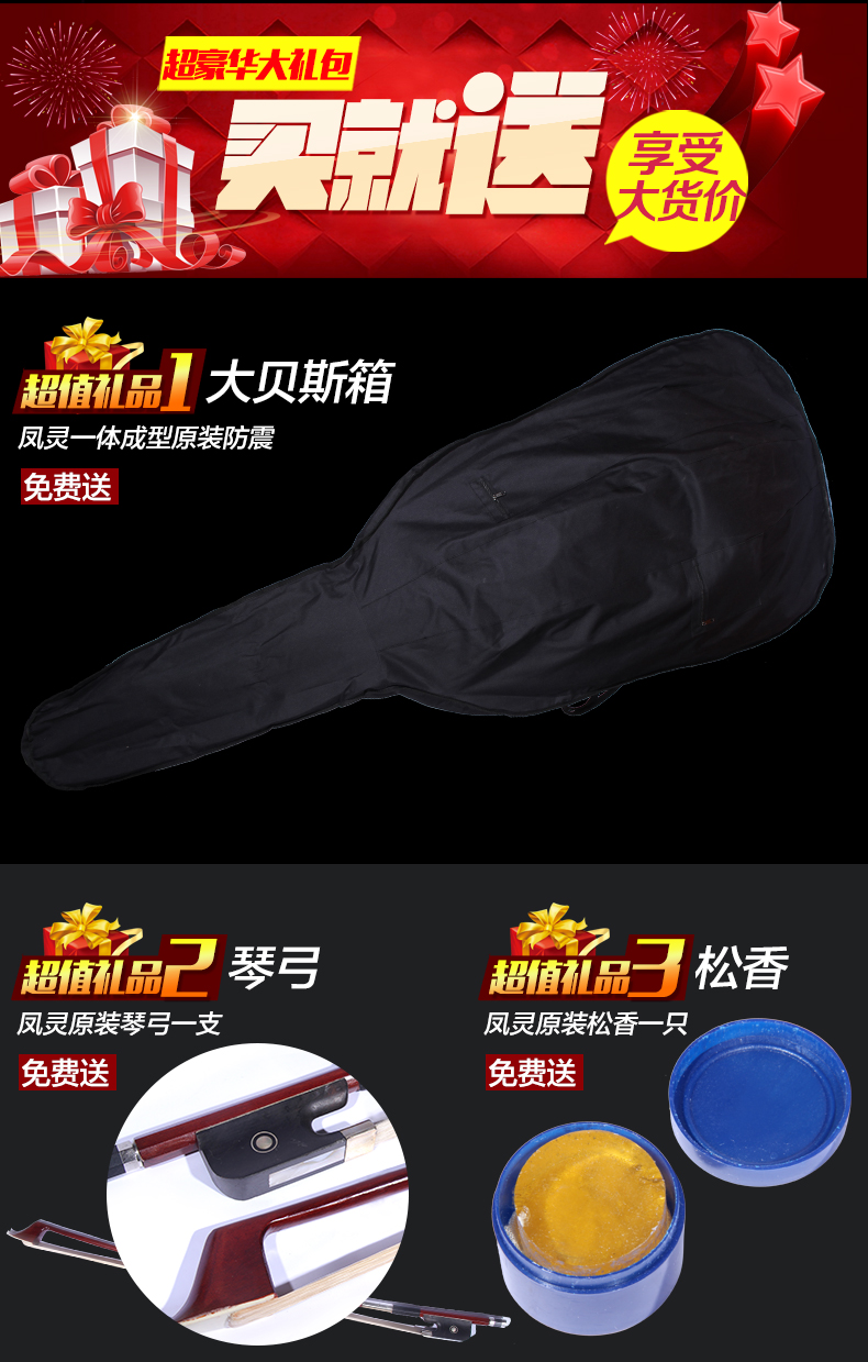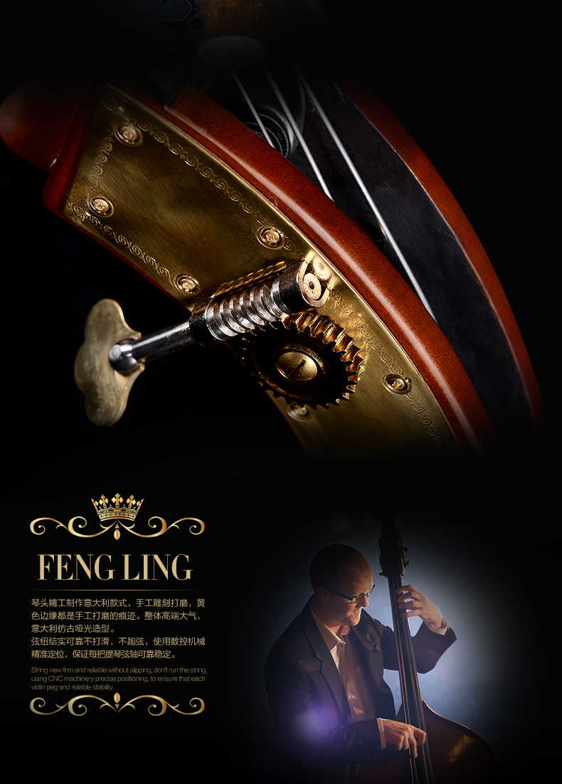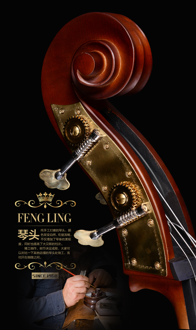 商品名称:凤灵大提琴 手工乌木实板大贝司 大提琴 考级演奏乐器FLB2111