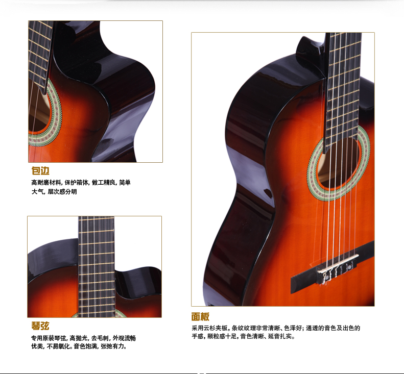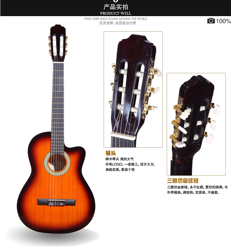商品名称:凤灵正品成人古典缺角木吉他FLCG4111C初学普及弹拨乐器