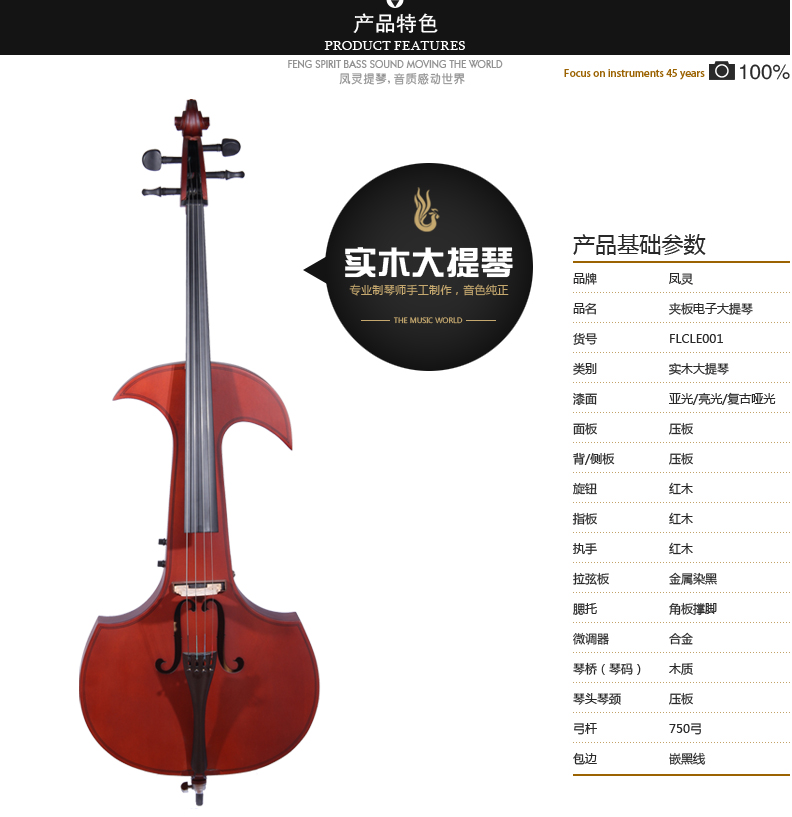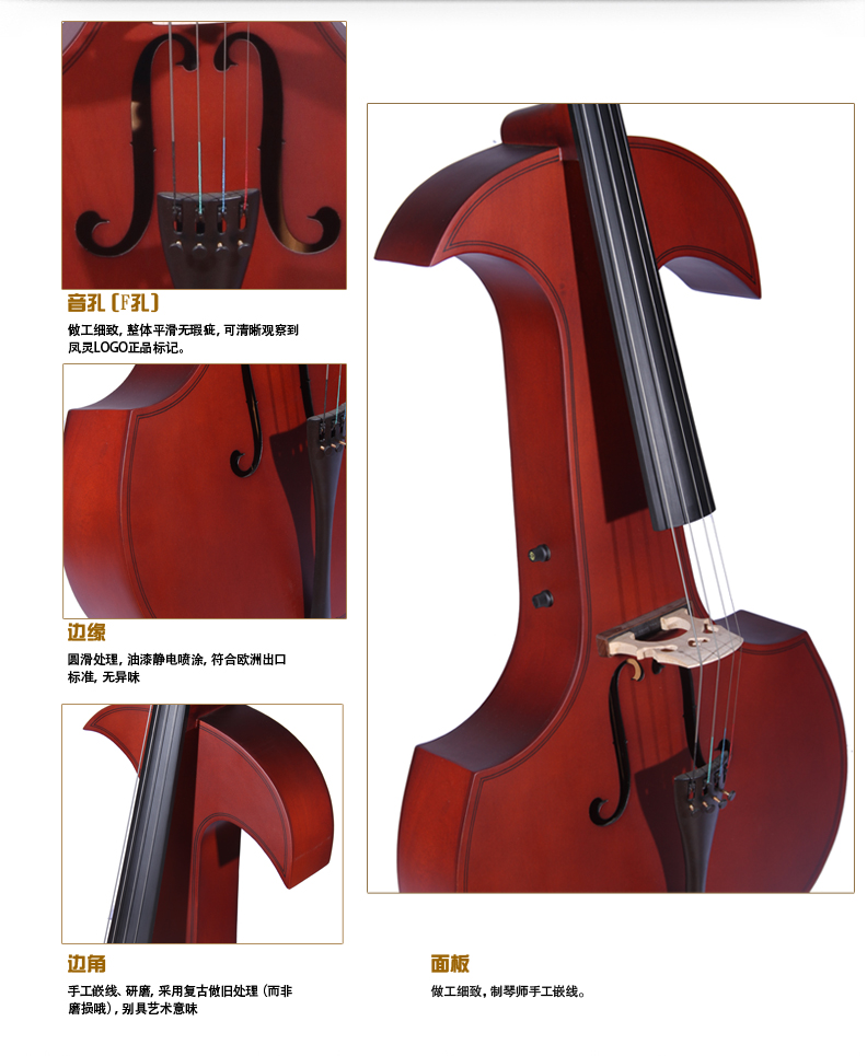 商品名称:凤灵乐器初学者大提琴FLCLE001 乌木配件手工 电子 电声大提琴