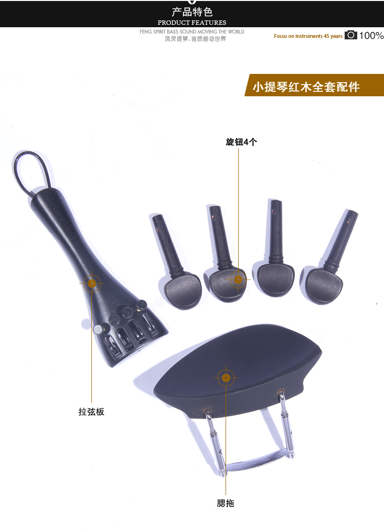 商品名称:凤灵普及小提琴配件 腮托/金属拉弦板/弦轴/尾柱/尾绳/正反螺丝全