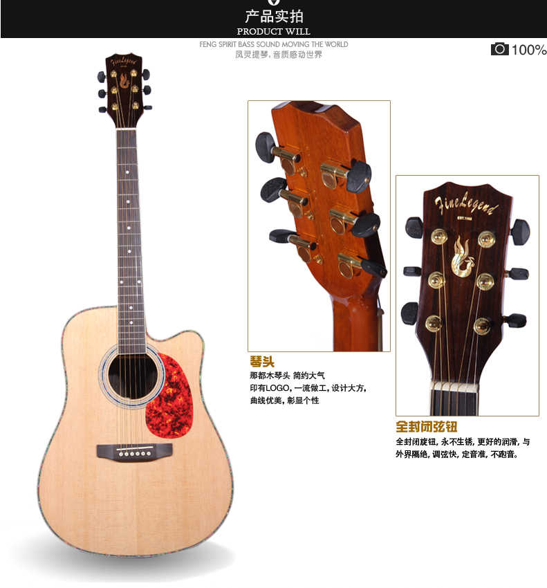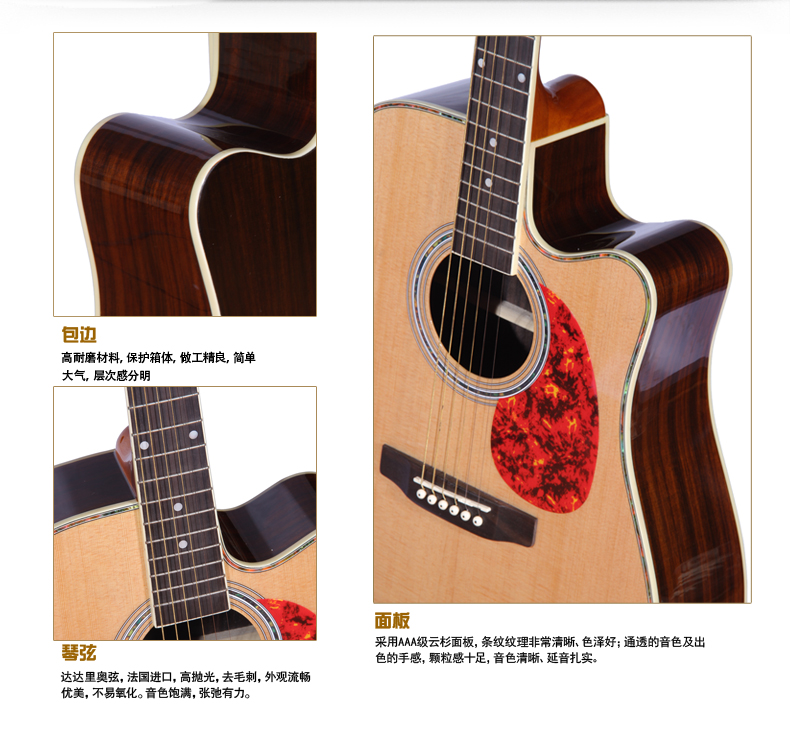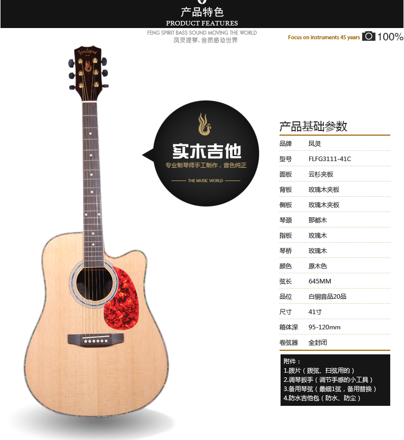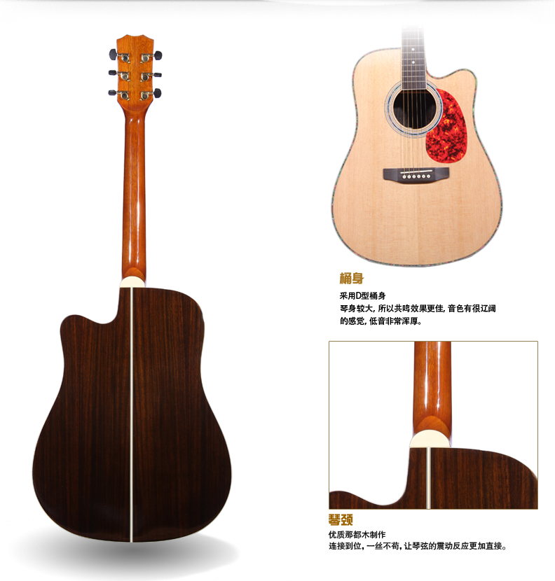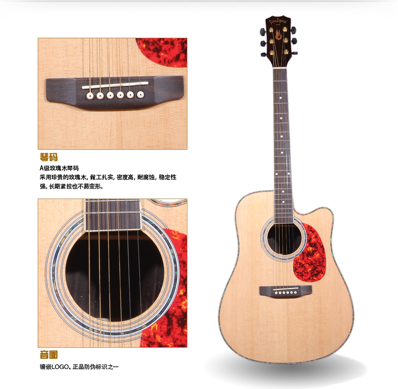 商品名称:凤灵41寸玫瑰木民谣缺角吉他FLFG3111-41C 正品考级乐器