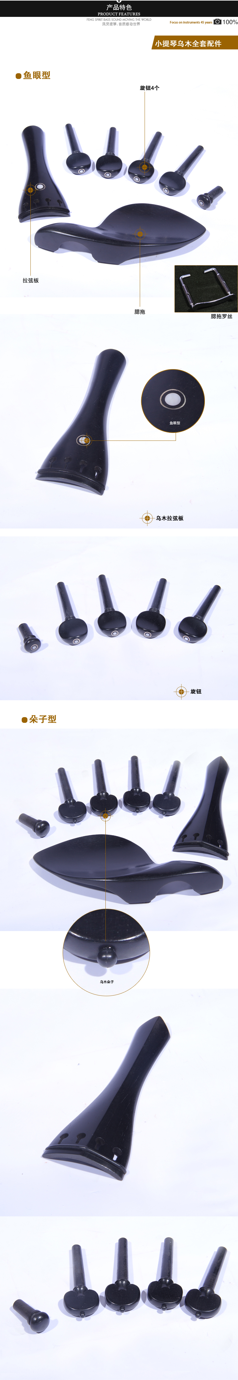 商品名称:小提琴乌木配件 腮托/拉弦板/旋轴/尾丁/尾绳/正反螺丝 全套