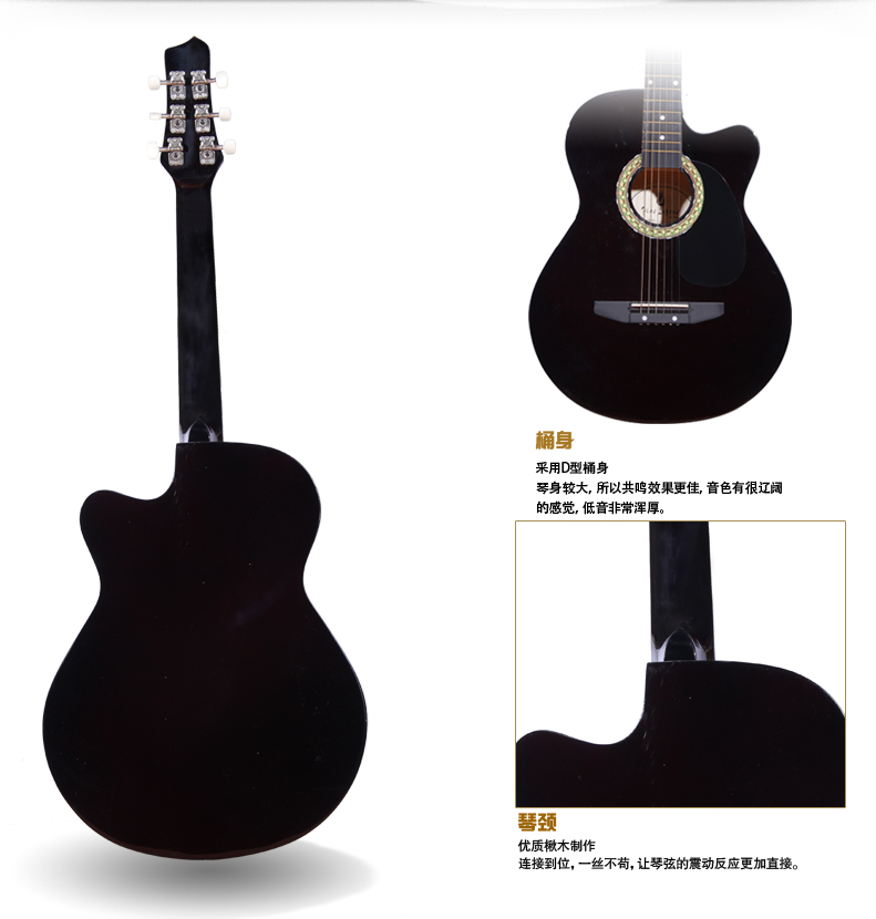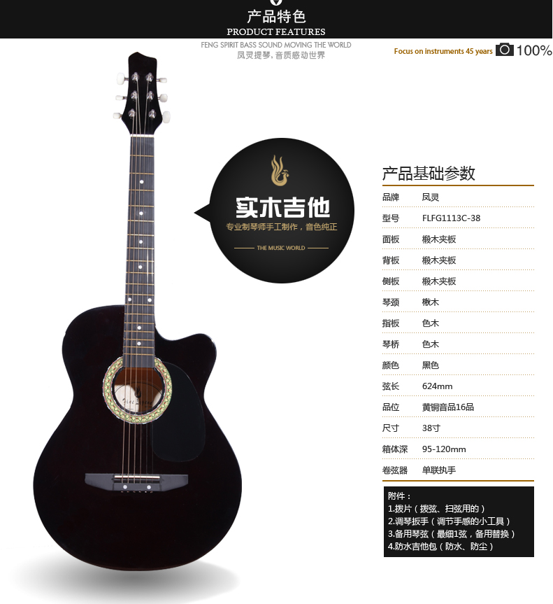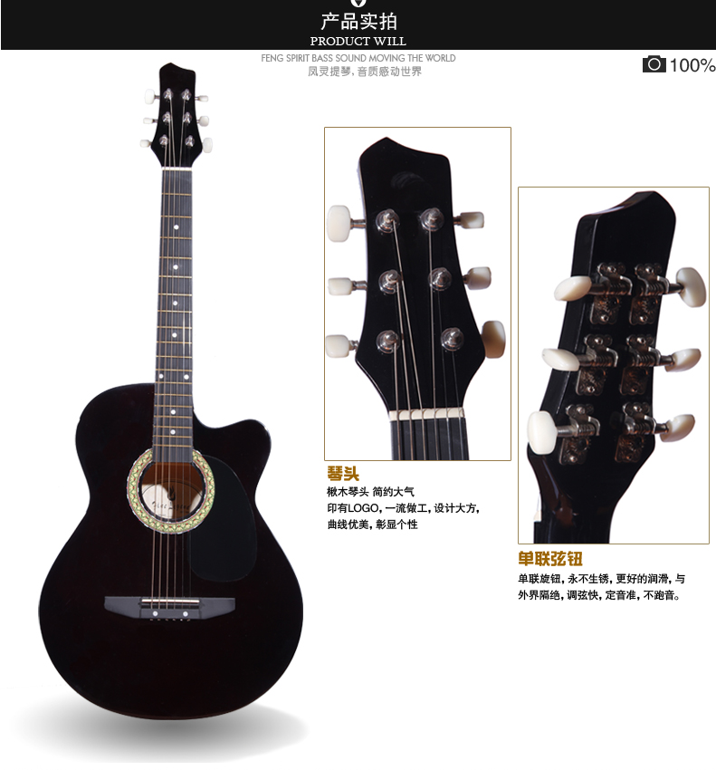 商品名称:凤灵正品儿童/成人民谣缺角木吉他FLFG1113C-38初学普及弹拨乐器