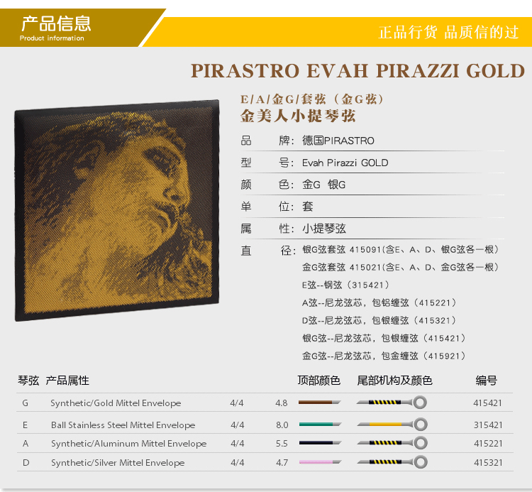 商品名称:德国PIRASTRO金美人小提琴弦金G银G弦小提琴琴弦套弦E/A/D/G单弦