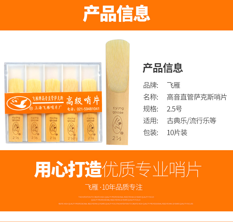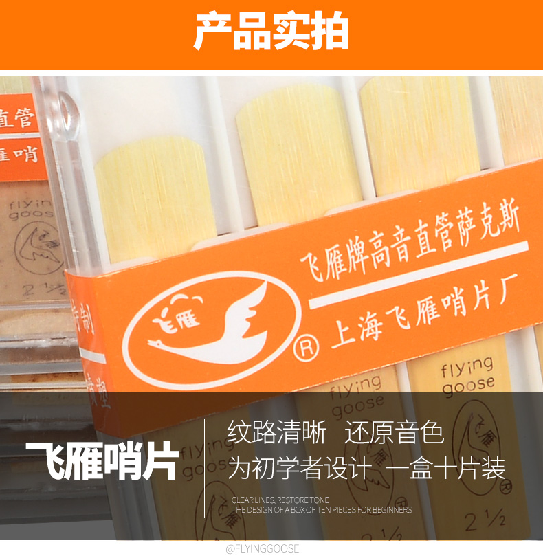正品飞雁降B调高音直管萨克斯哨片10片独立包装2.5号初学演奏簧片