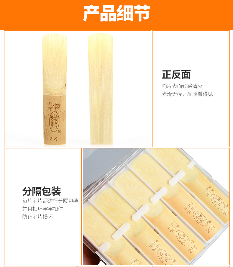 商品名称:正品飞雁降B调高音直管萨克斯哨片10片独立包装2.5号初学演奏簧片
