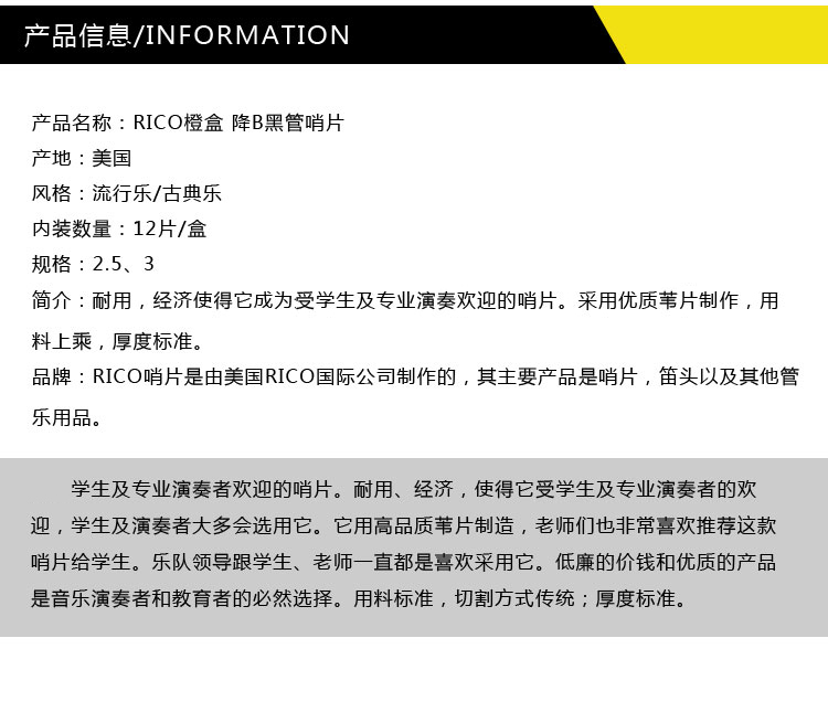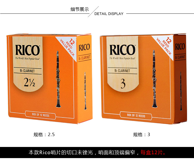 商品名称:美国瑞口RICO专业黑管单簧管哨片12片装降B调