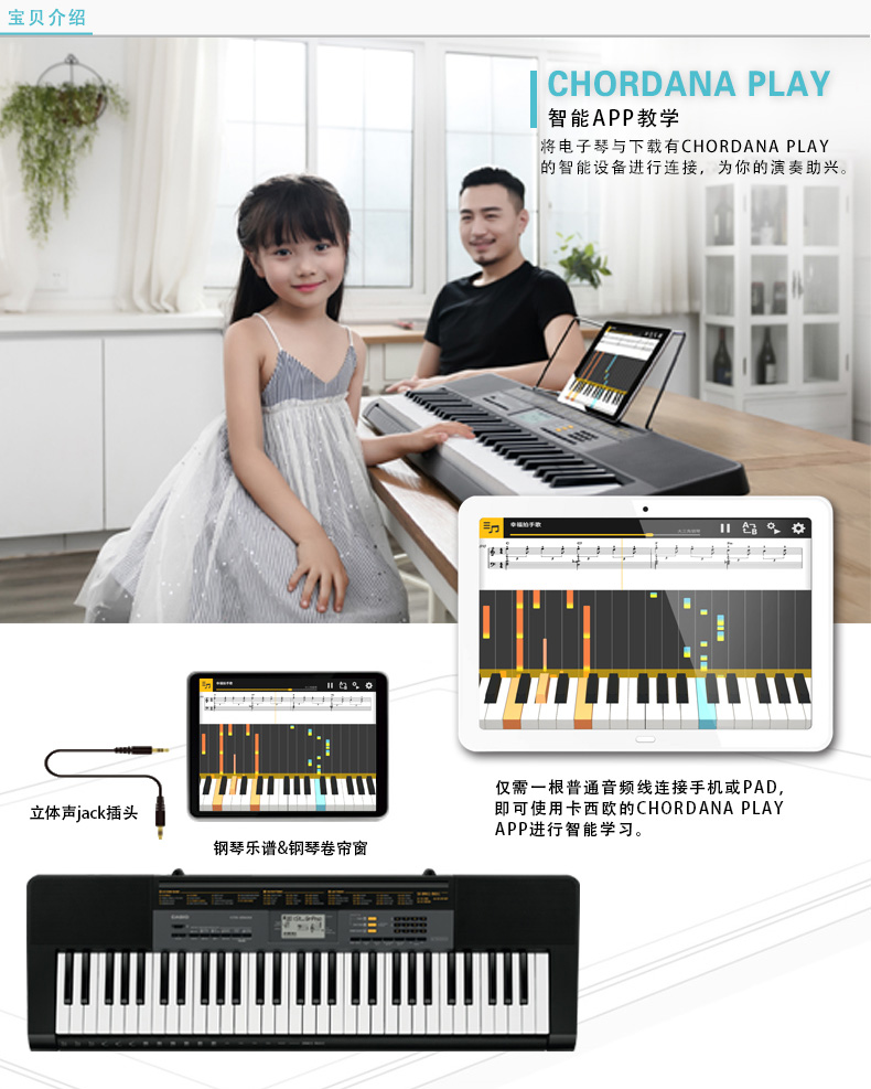 商品名称:卡西欧电子琴儿童初学CTK-2500教学力度仿钢琴键考级智能成人61键