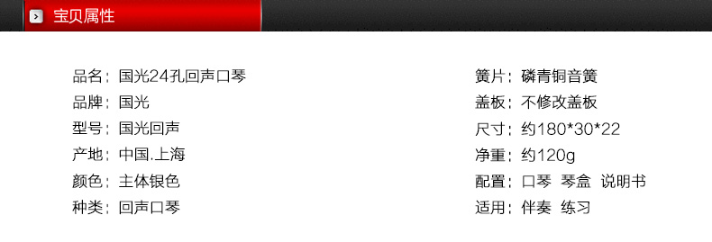 商品名称:上海国光10-204 24孔回声口琴国光C调 铜座板口琴