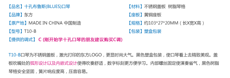 商品名称:东方之巅10孔布鲁斯口琴 十孔口琴 布鲁斯口琴 (黑塑盒)