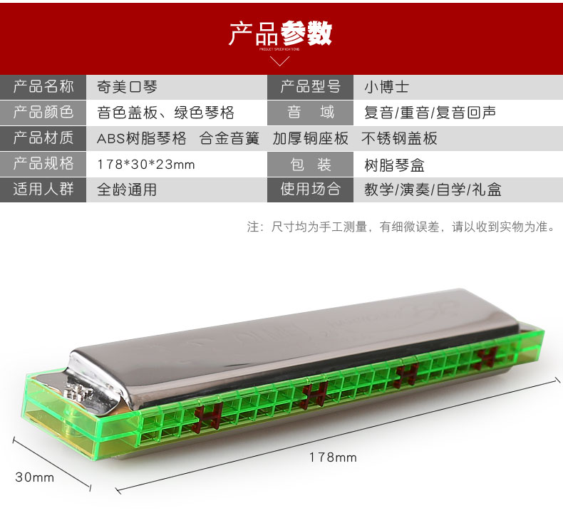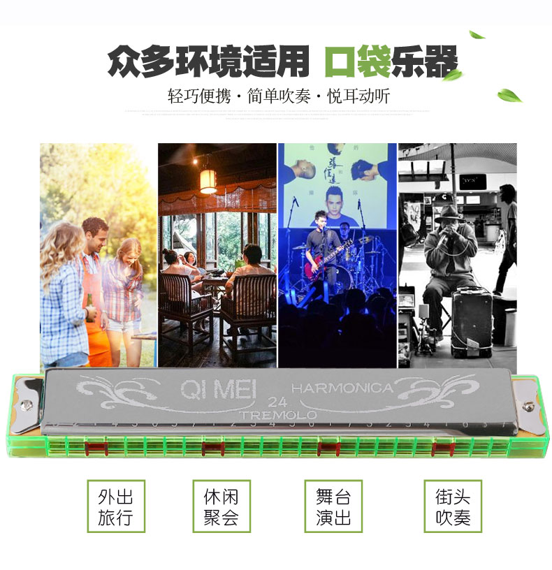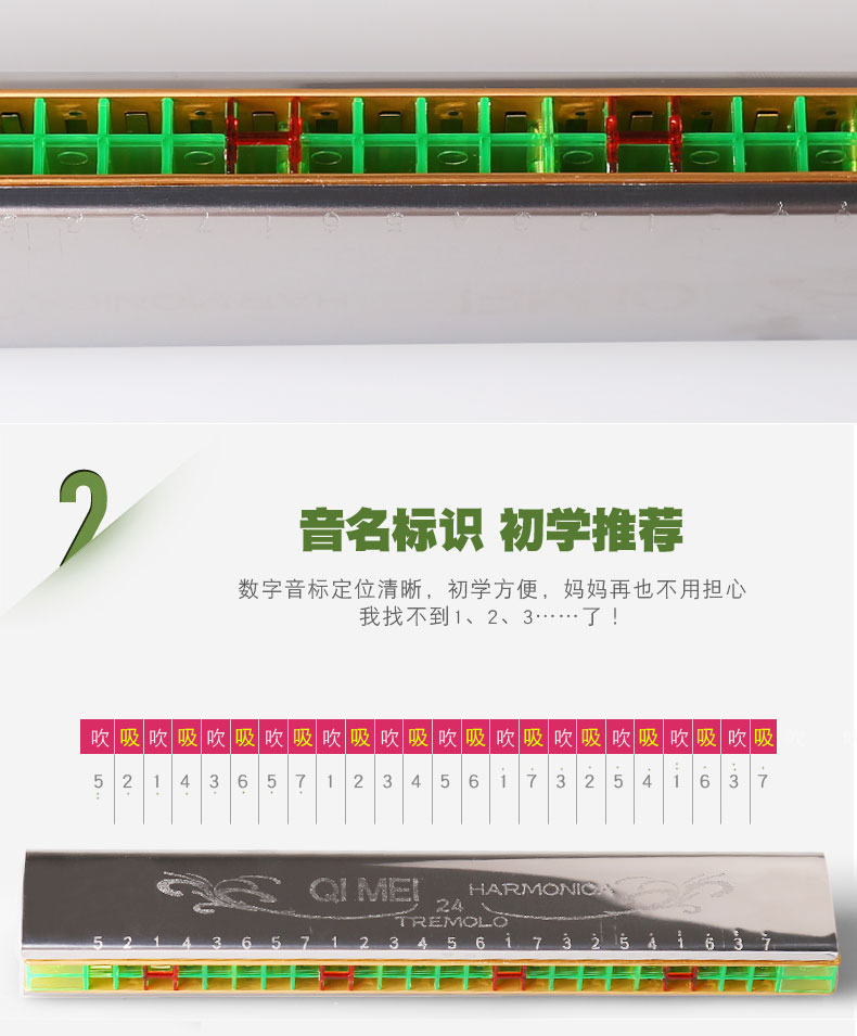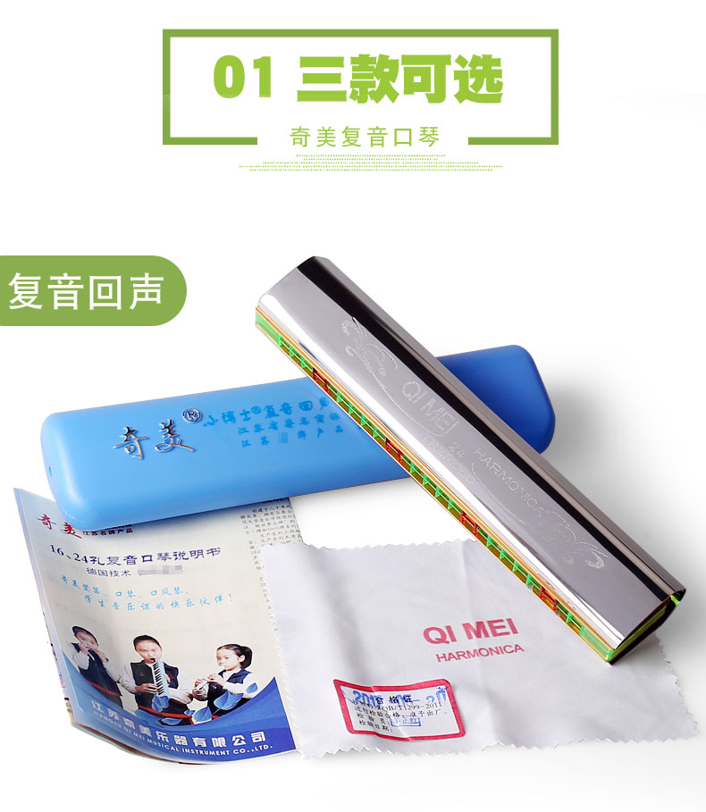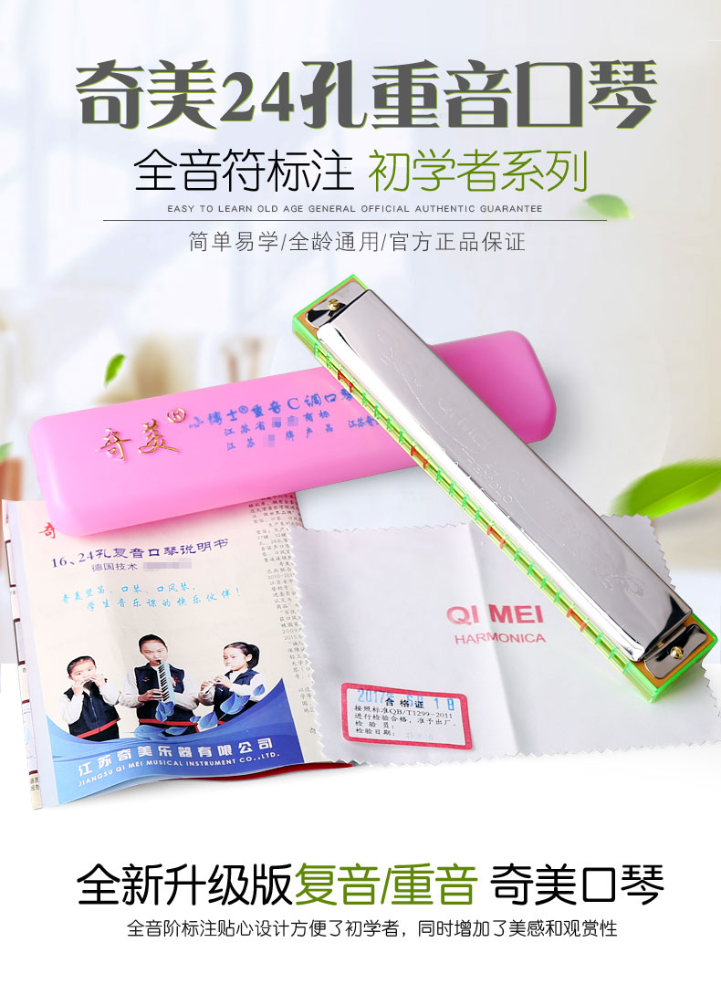 商品名称:奇美24孔复音回声口琴 成人初学入门演奏儿童重音口琴彩盒装
