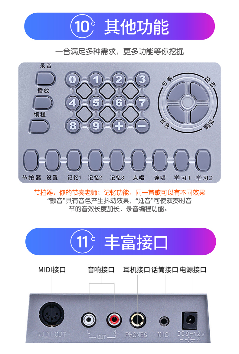 商品名称:新韵329多功能智能61键钢琴键成人初学者儿童入门幼师教学电子琴
