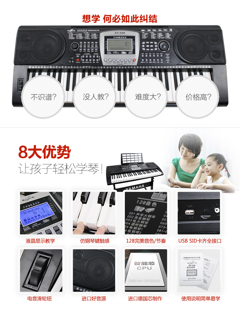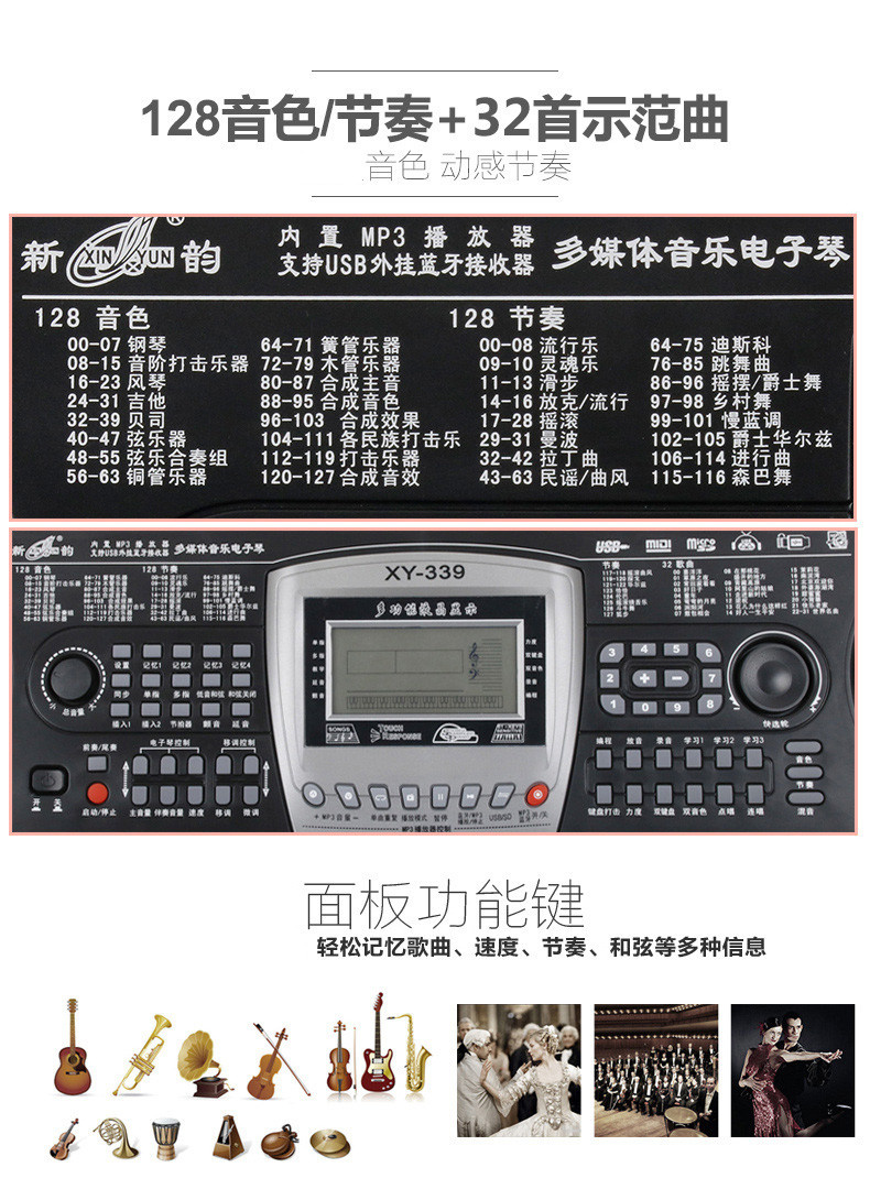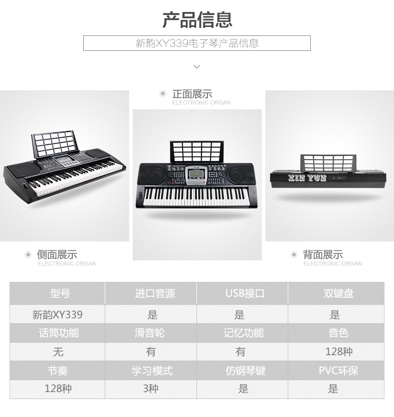 商品名称:新韵XY-339成人电子琴 61键 钢琴力度键盘