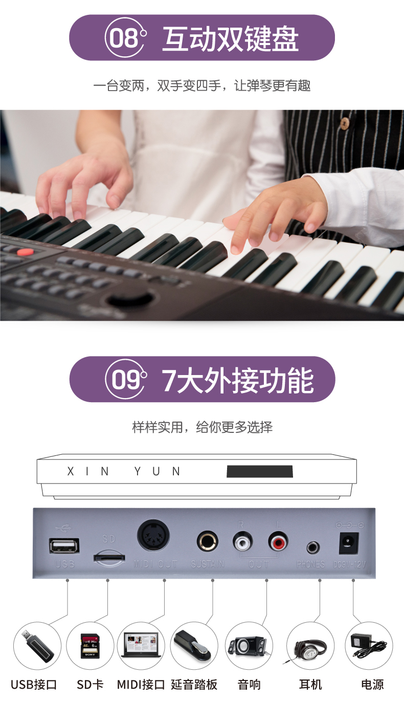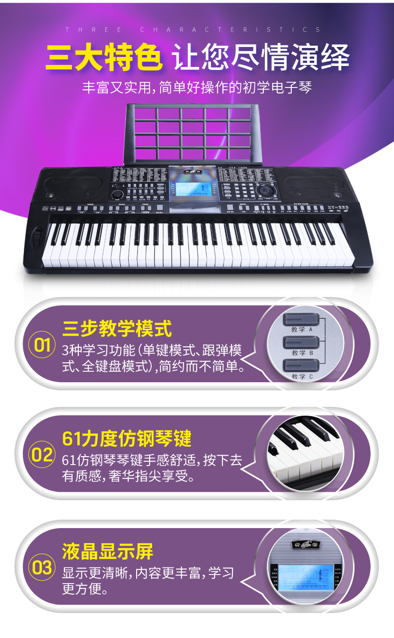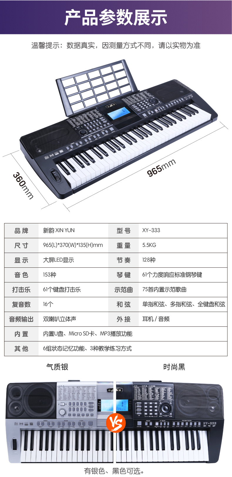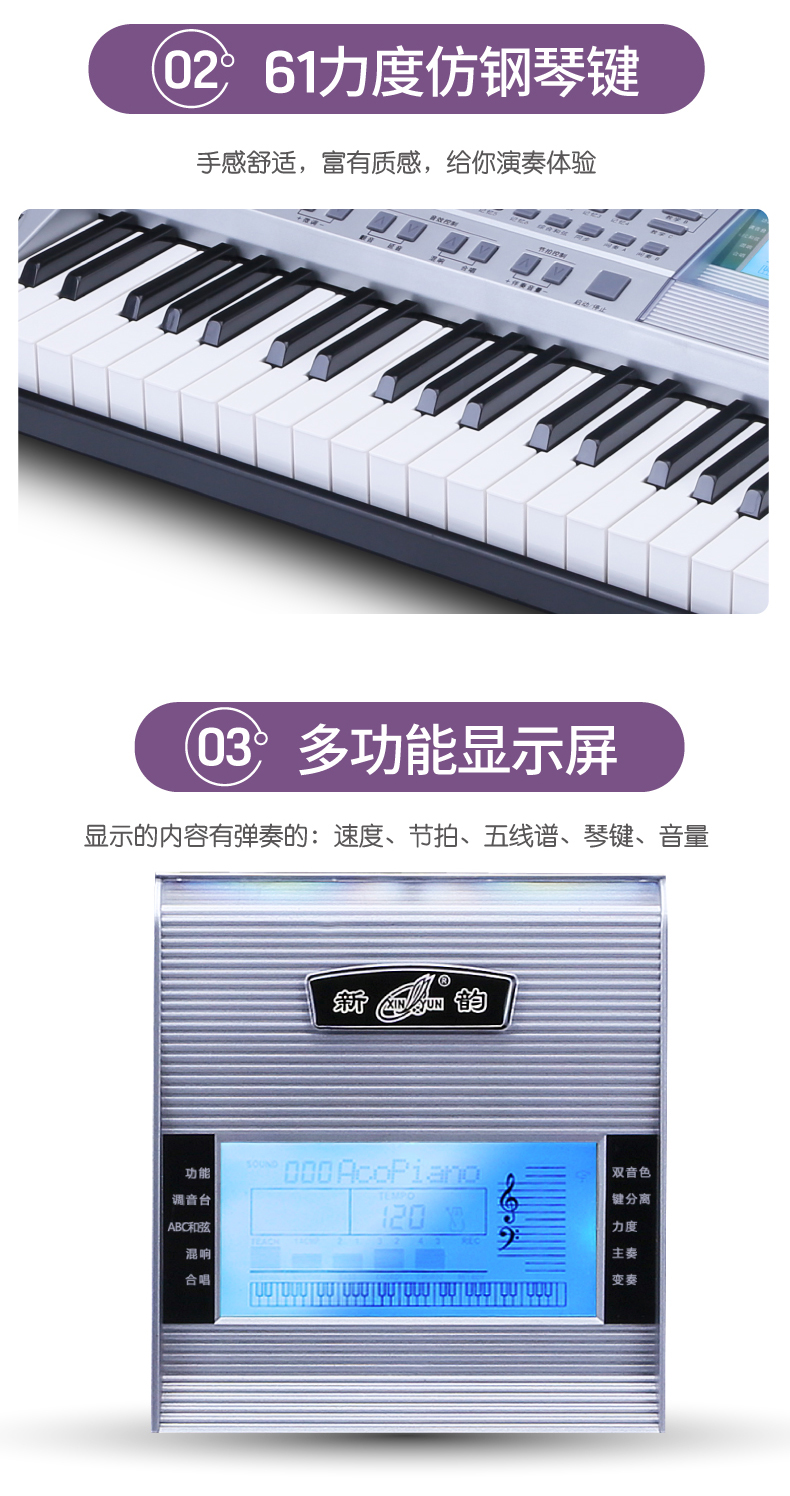 商品名称:新韵333多功能电子琴61钢琴力度键儿童成人初学者入门幼师教学琴