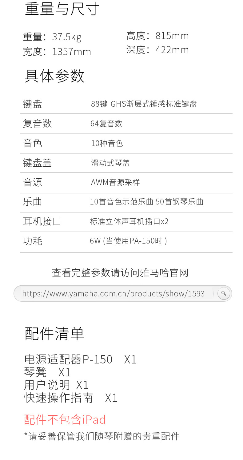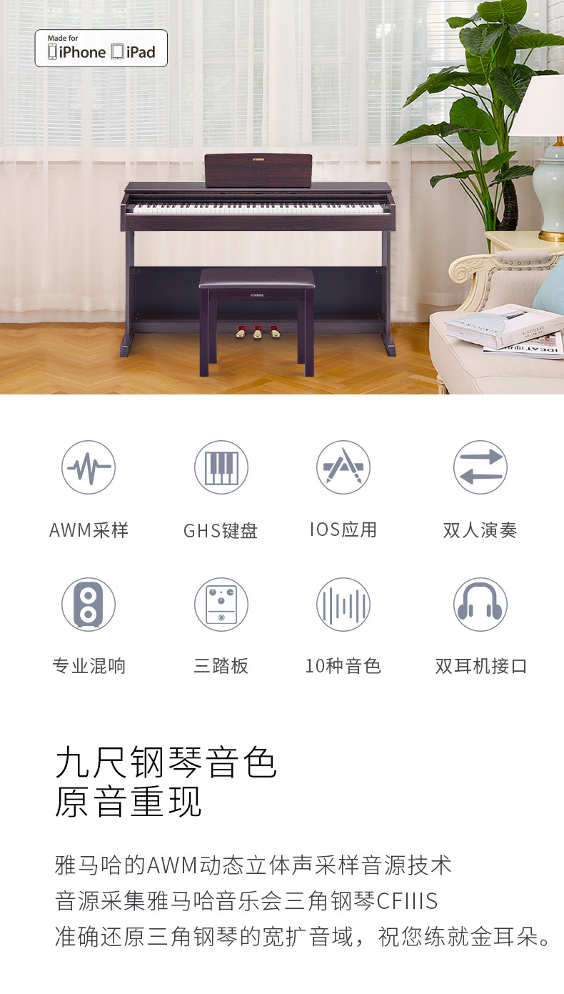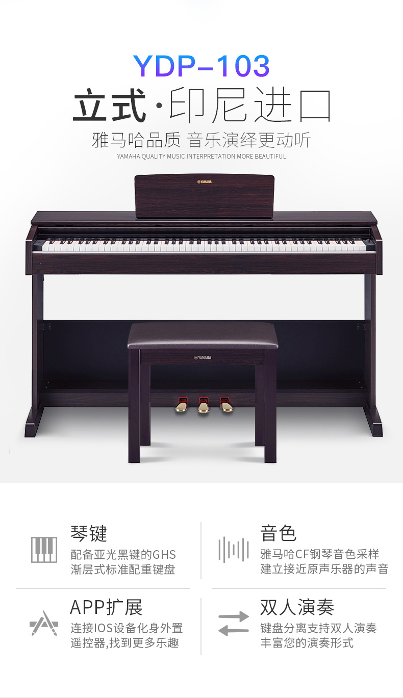 商品名称:雅马哈电钢琴YDP-103R电子数码钢琴 88键重锤成人专业家用初学者