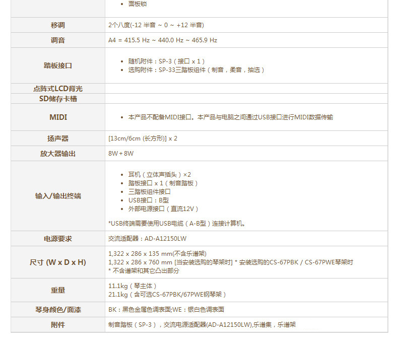 商品名称:CASIO卡西欧电钢琴PX150电子钢琴88键重锤家用专业成人初学PX-160