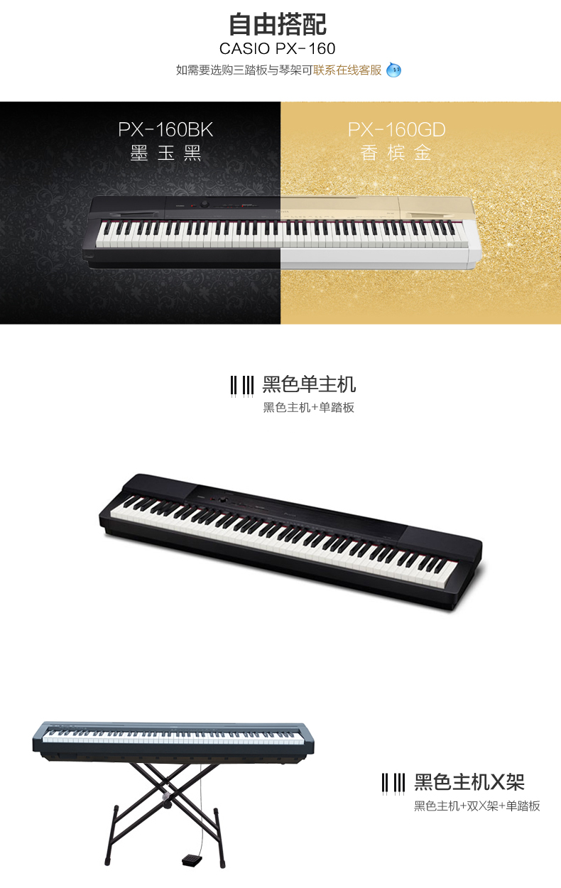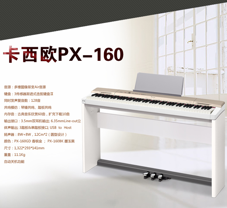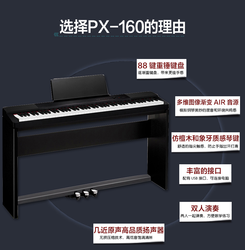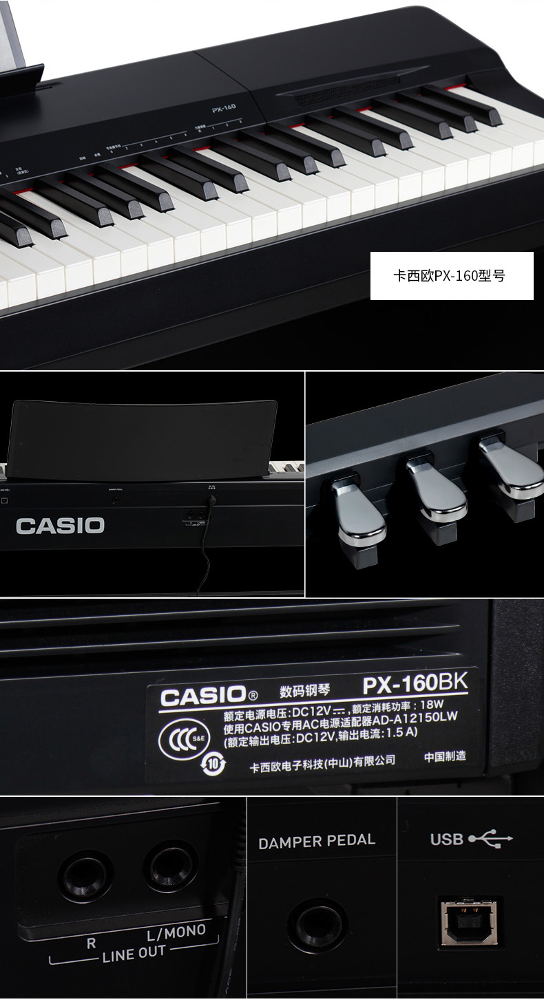 商品名称:CASIO卡西欧 PX-160电钢琴 88键重锤电子智能数码钢琴