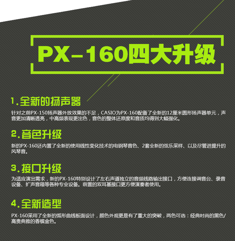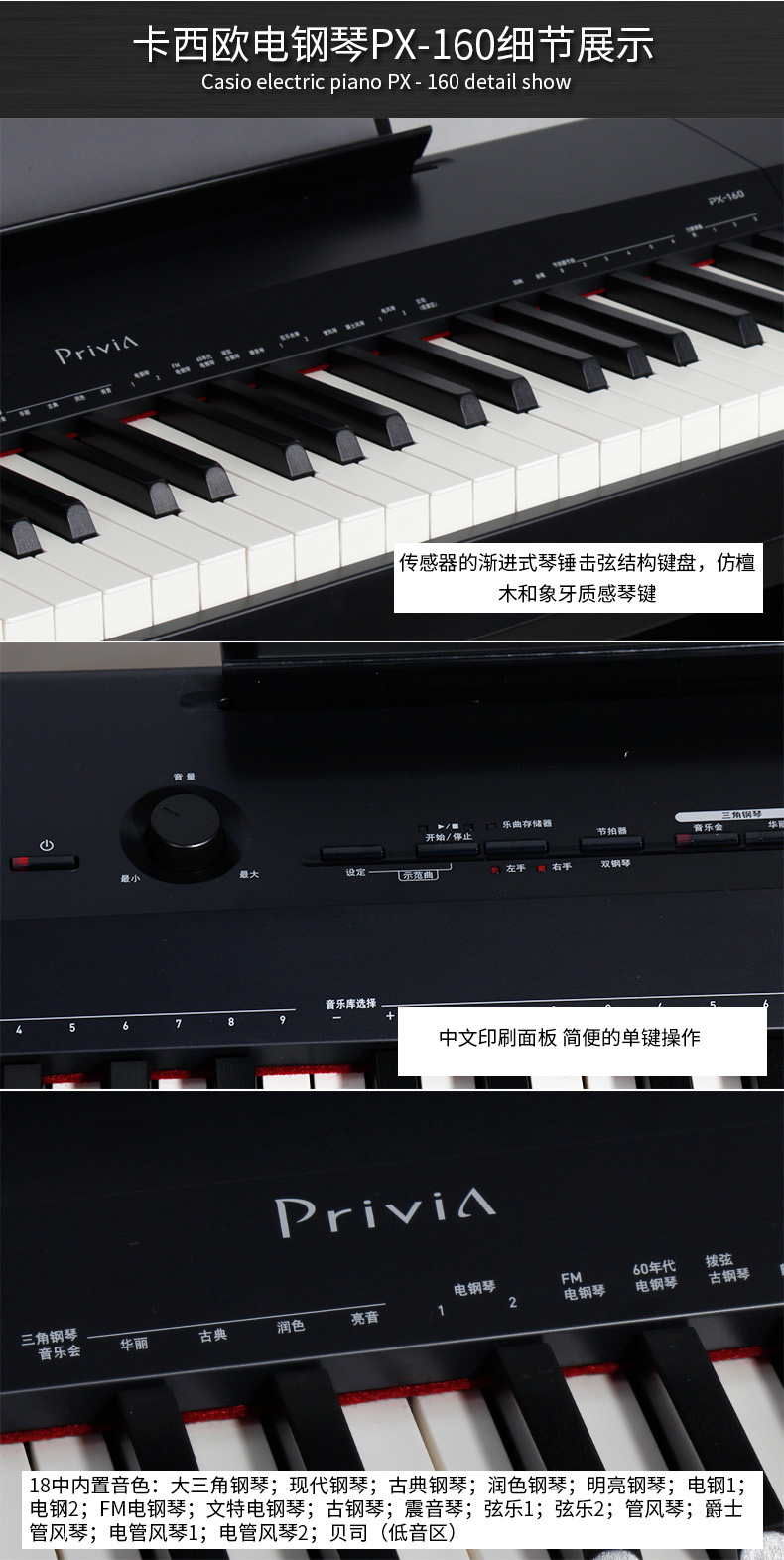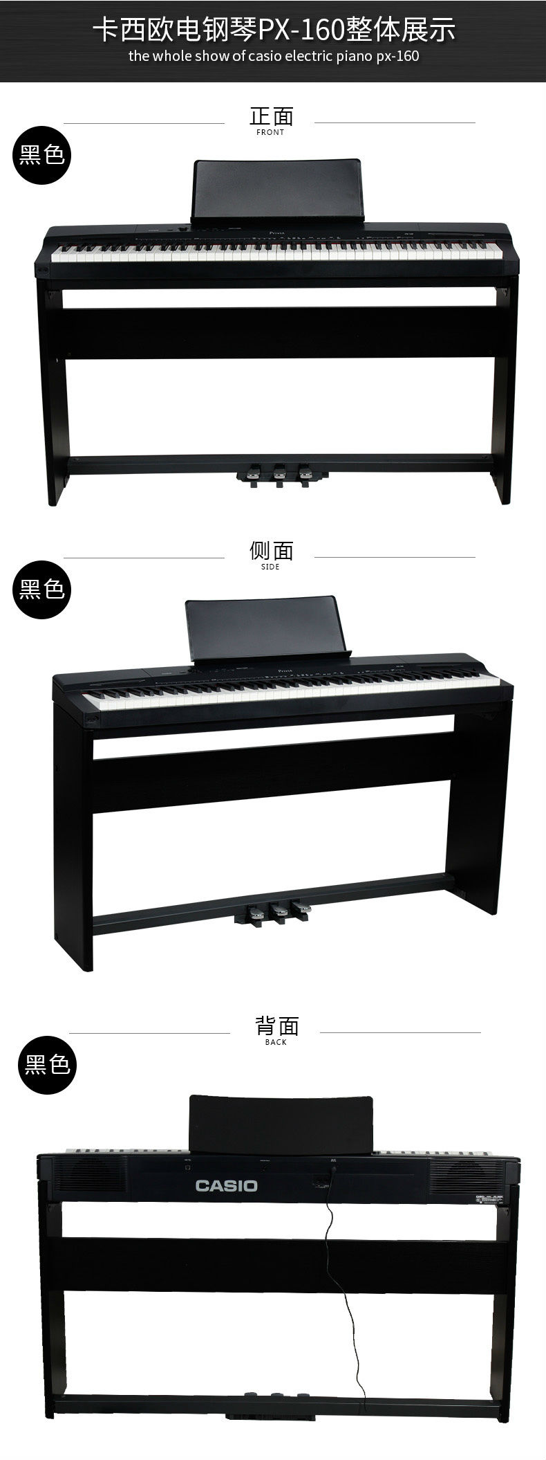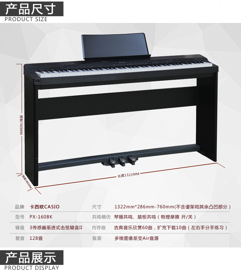 商品名称:CASIO卡西欧 PX-160电钢琴 88键重锤电子智能数码钢琴