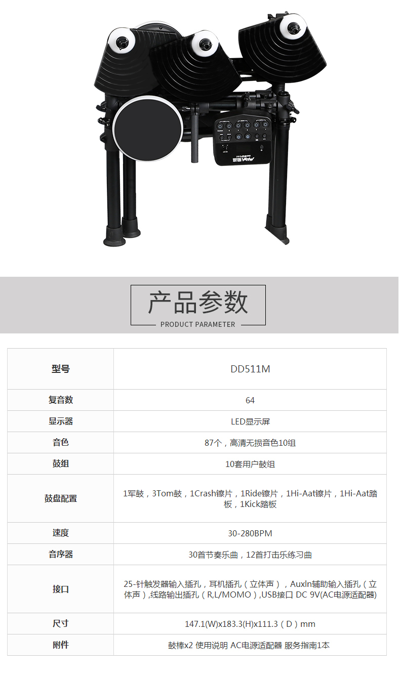 商品名称:新品美得理电子鼓DD-511M 智能便携折叠电子架子鼓 魔鲨电鼓