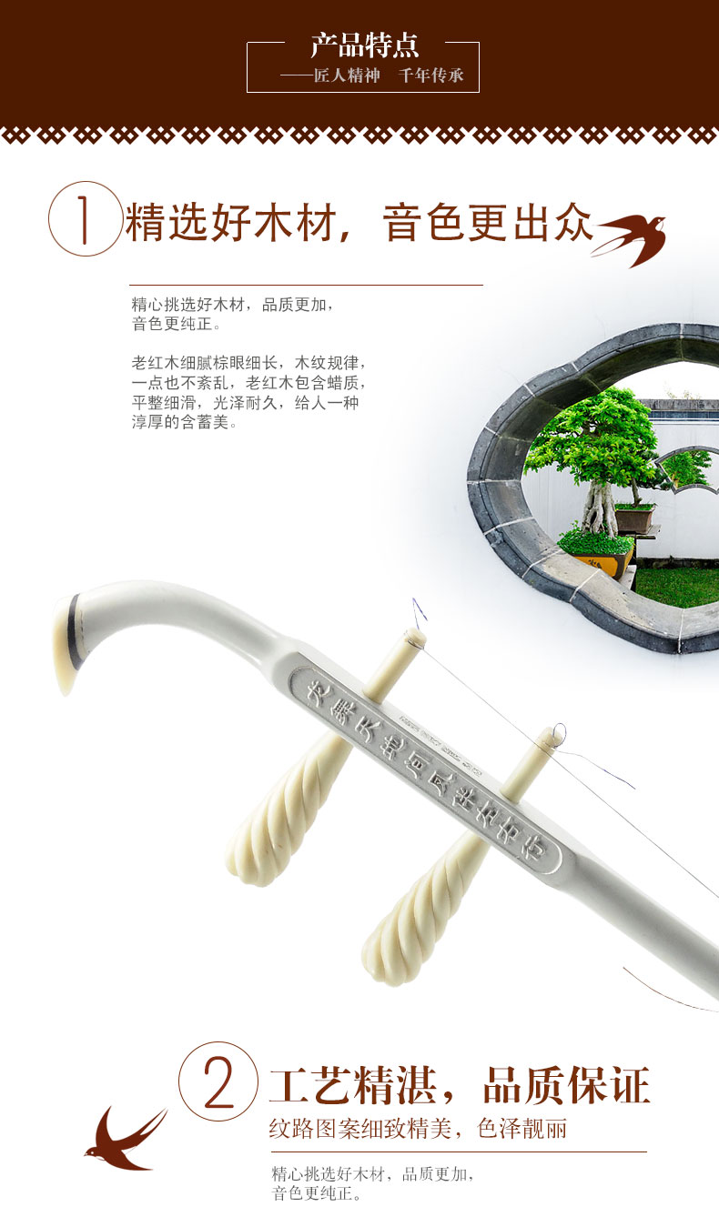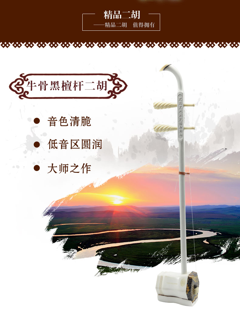 商品名称:神州乐器 牛骨黑檀木杆二胡 专业二胡 演奏二胡 送盒包 送配件