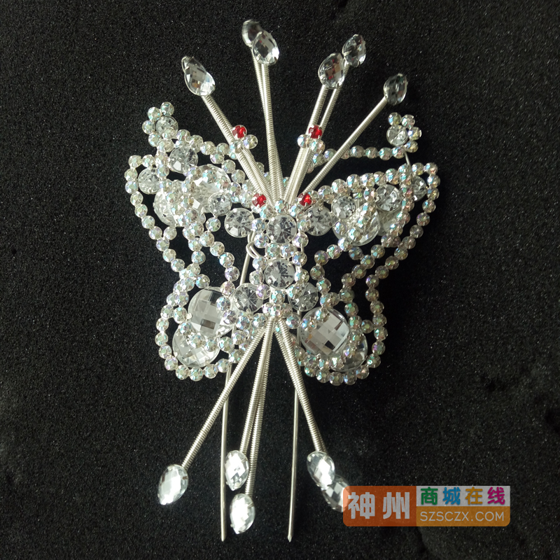 商品名称:戏剧头面头饰戏曲用品花旦青衣丫鬟包头木钻顶花 大蝴蝶 大顶花