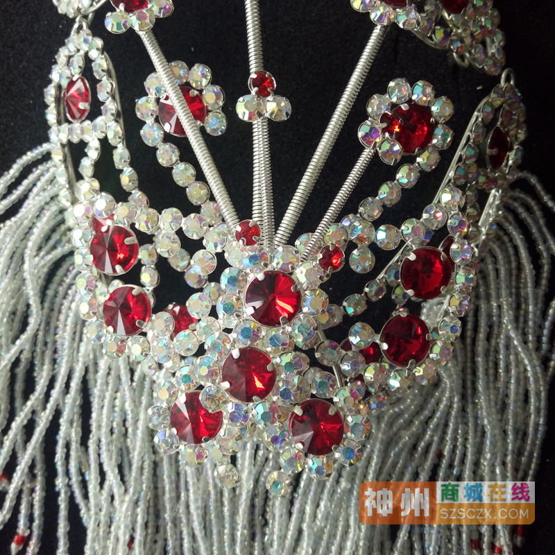 商品名称:中原戏装戏曲用品戏曲头面双光水钻头面 双光水钻后兜三件套