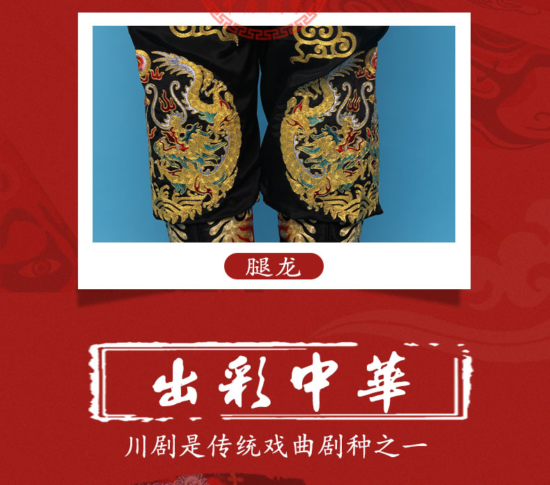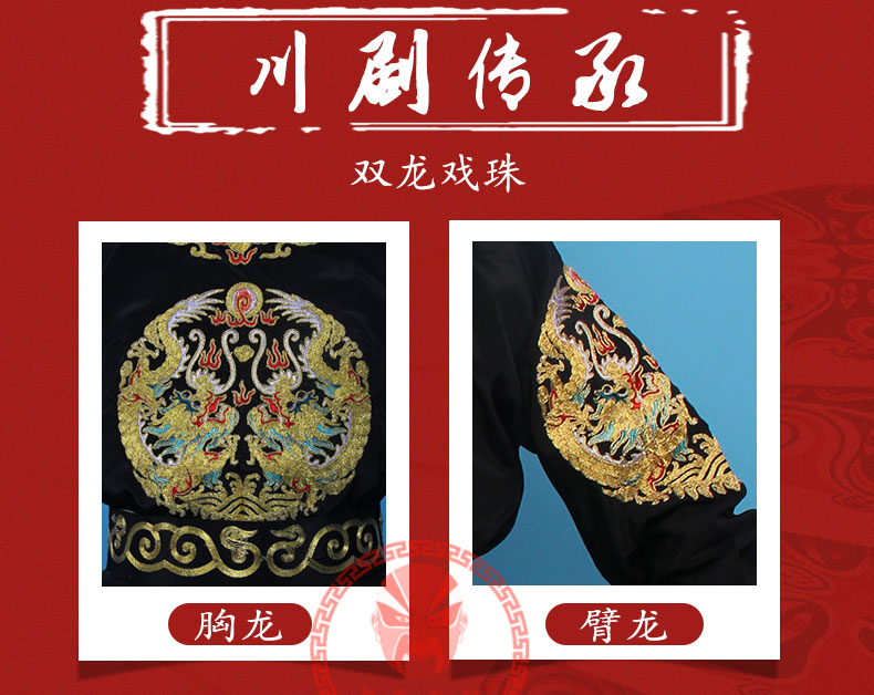 商品名称:中原戏装盘金变脸服全套川剧变脸服装专用新款二双龙戏珠变脸服