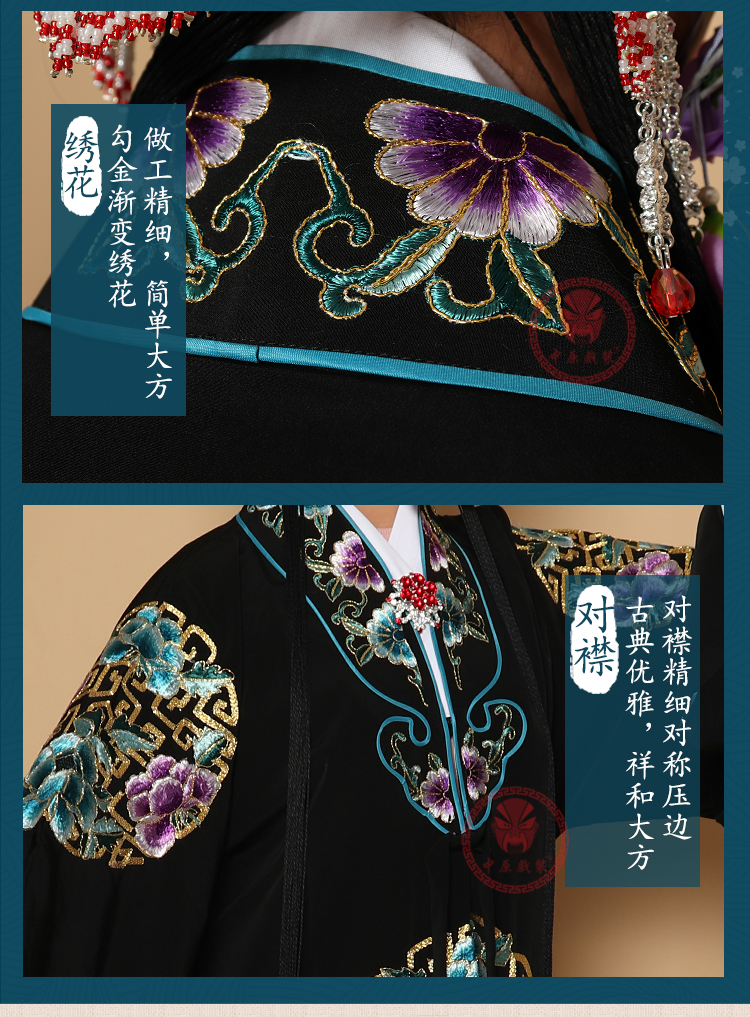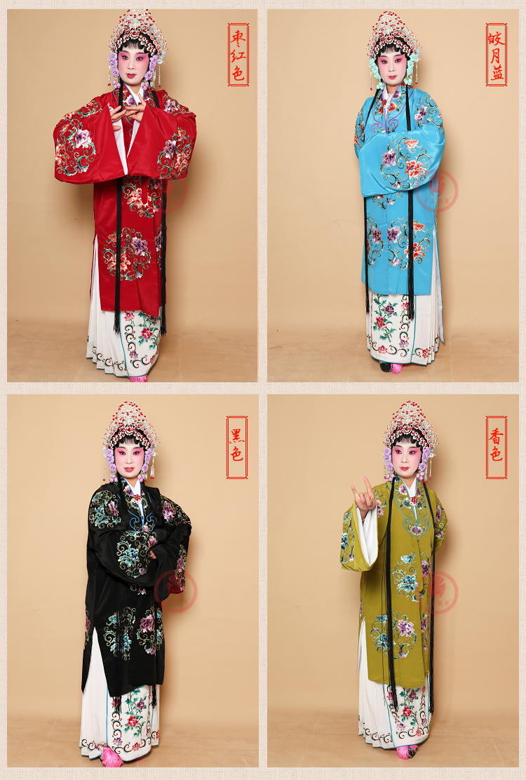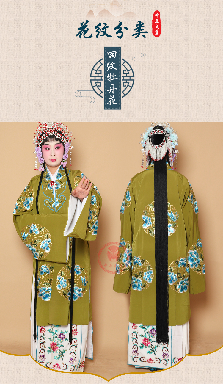 商品名称:中原戏装戏曲团花女披青衣披花旦老旦服装京剧戏剧穆桂英女团花披