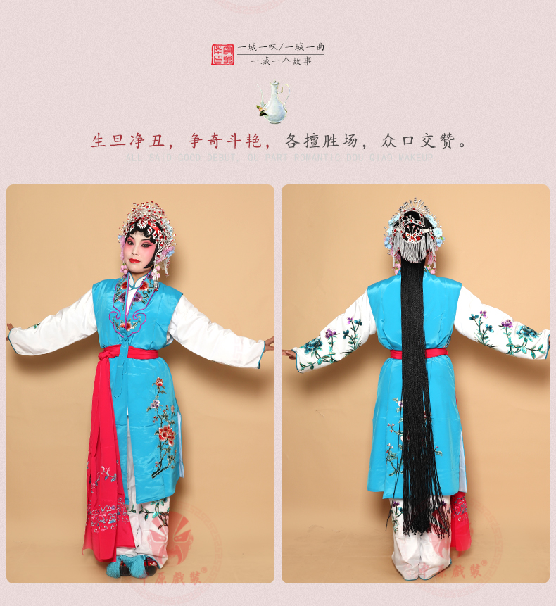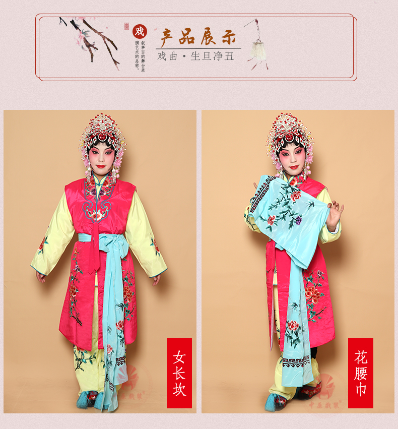 商品名称:中原戏装戏曲丫鬟长坎肩小旦京戏剧花旦服装俏花旦演出服女长坎肩