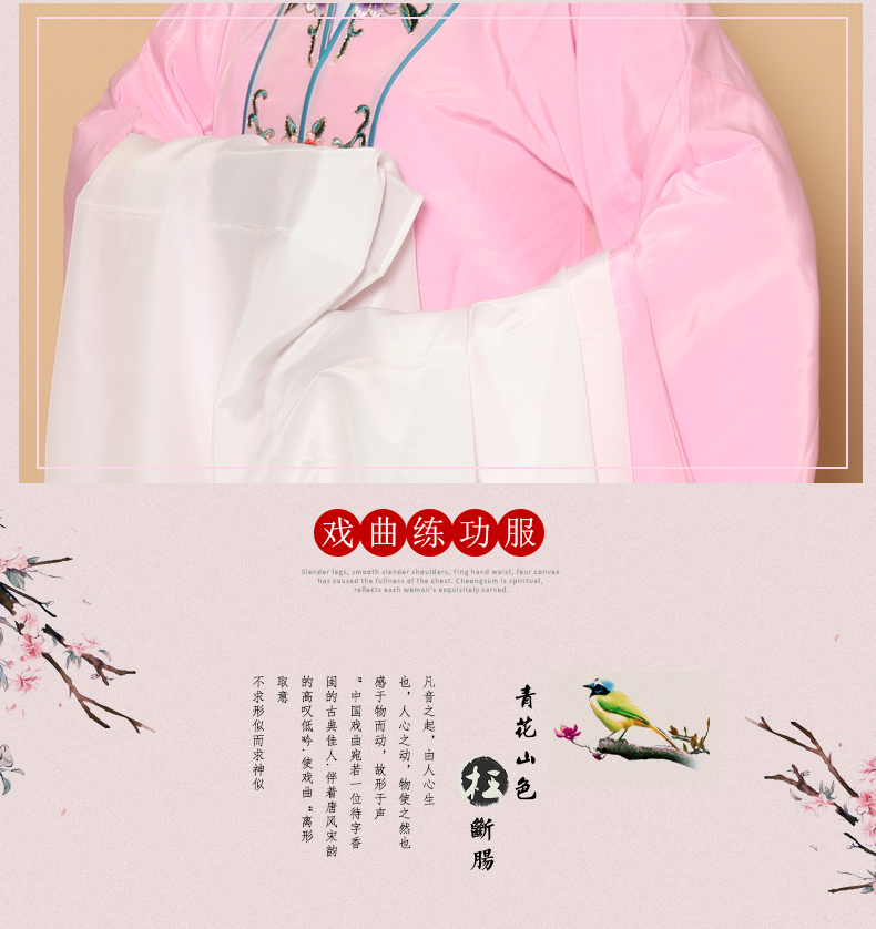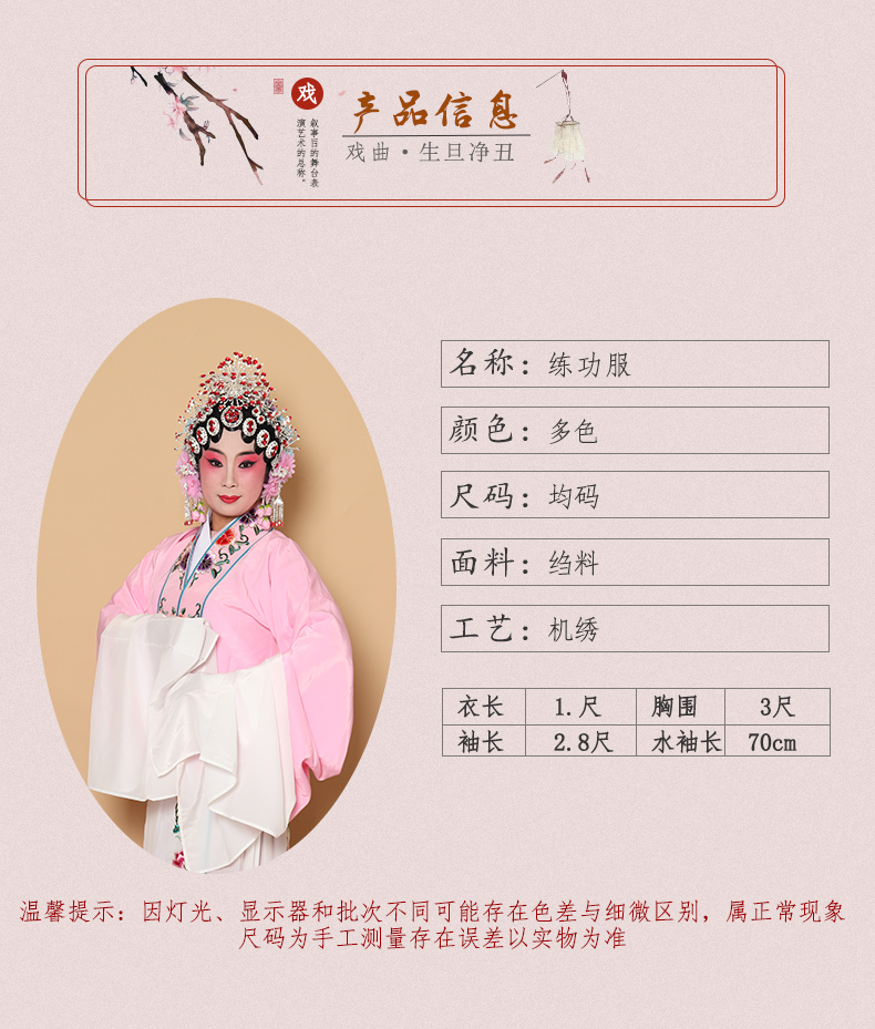 商品名称:中原戏装戏曲练功服京越剧戏剧服装花旦小姐演出服装练功水袖舞