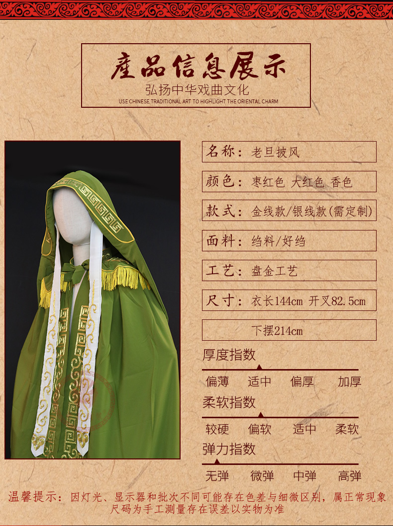 商品名称:中原戏装戏曲戏剧京剧越剧服装 老旦佘太君斗篷 好绉全金花边披风